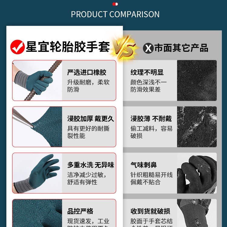 手套工作劳保耐磨防滑加厚劳动乳胶橡胶劳工防护干活工地浸胶防水