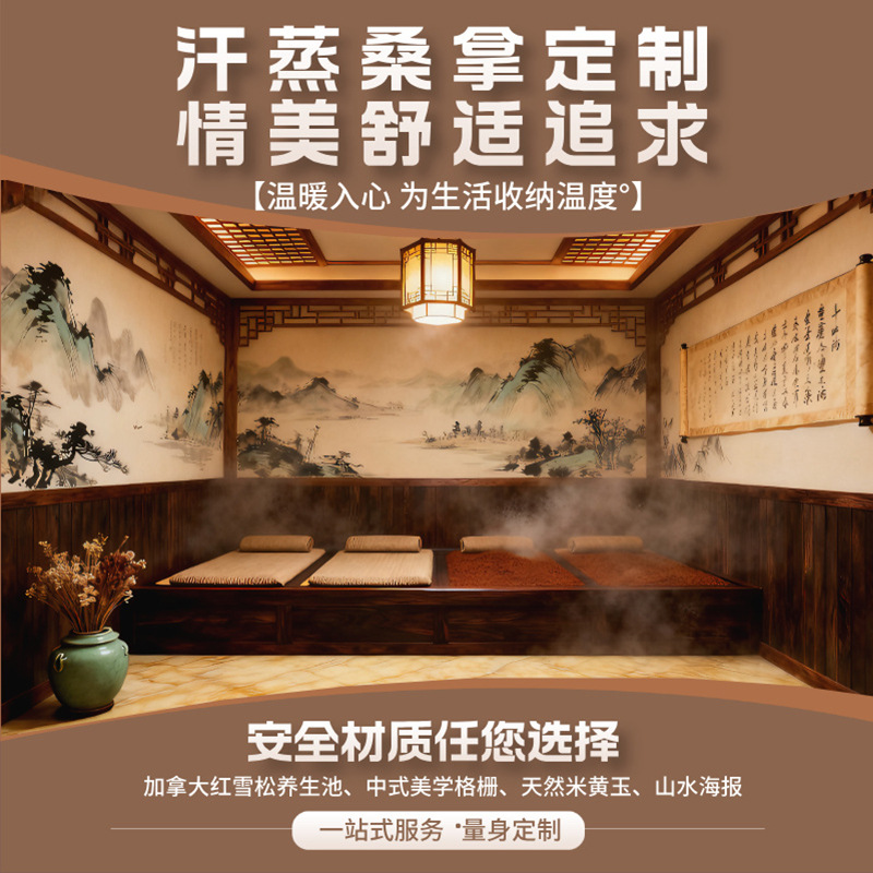 | 颜色 | 包工包料上门安装意向 | 规格 | 汗蒸区(单人/双人/多人)+养生池(1.2m×0.8m/1.8m×1.2m等)组合款;养生池可选恒温 |