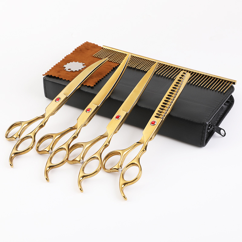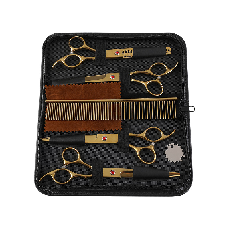 金色镀钛7寸宠物剪刀套装狗狗修毛剪专业打薄牙剪泰迪美容剪批发