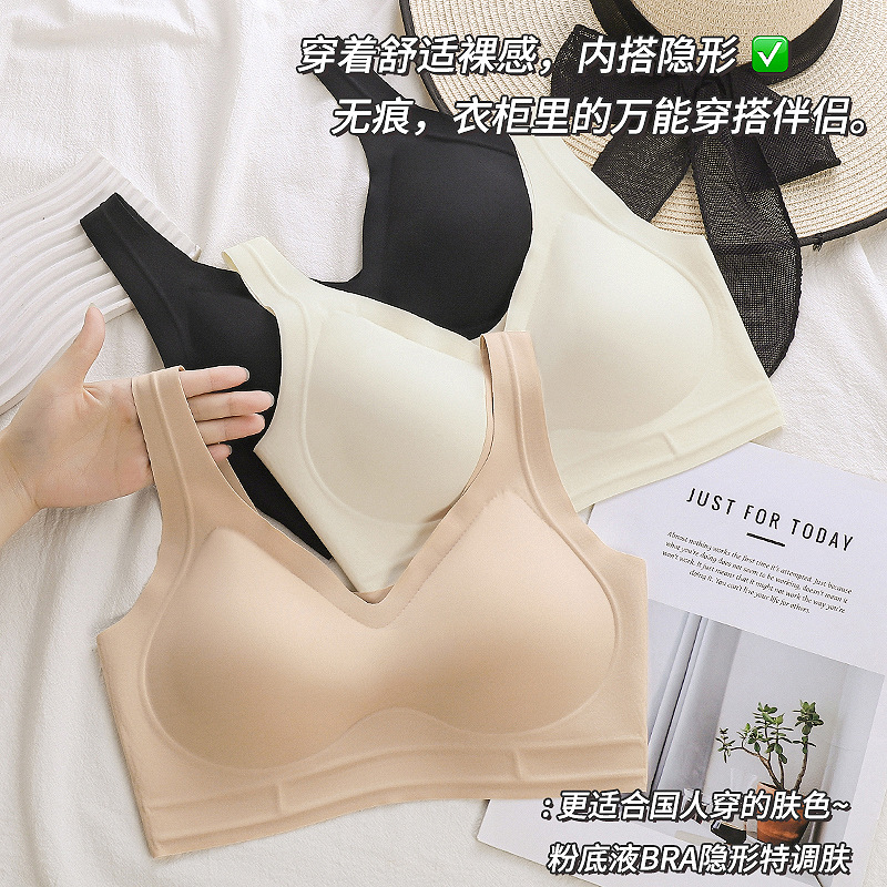 无痕女士内衣宽肩带无钢圈防下垂软支撑提拉聚拢透气简约女士文胸