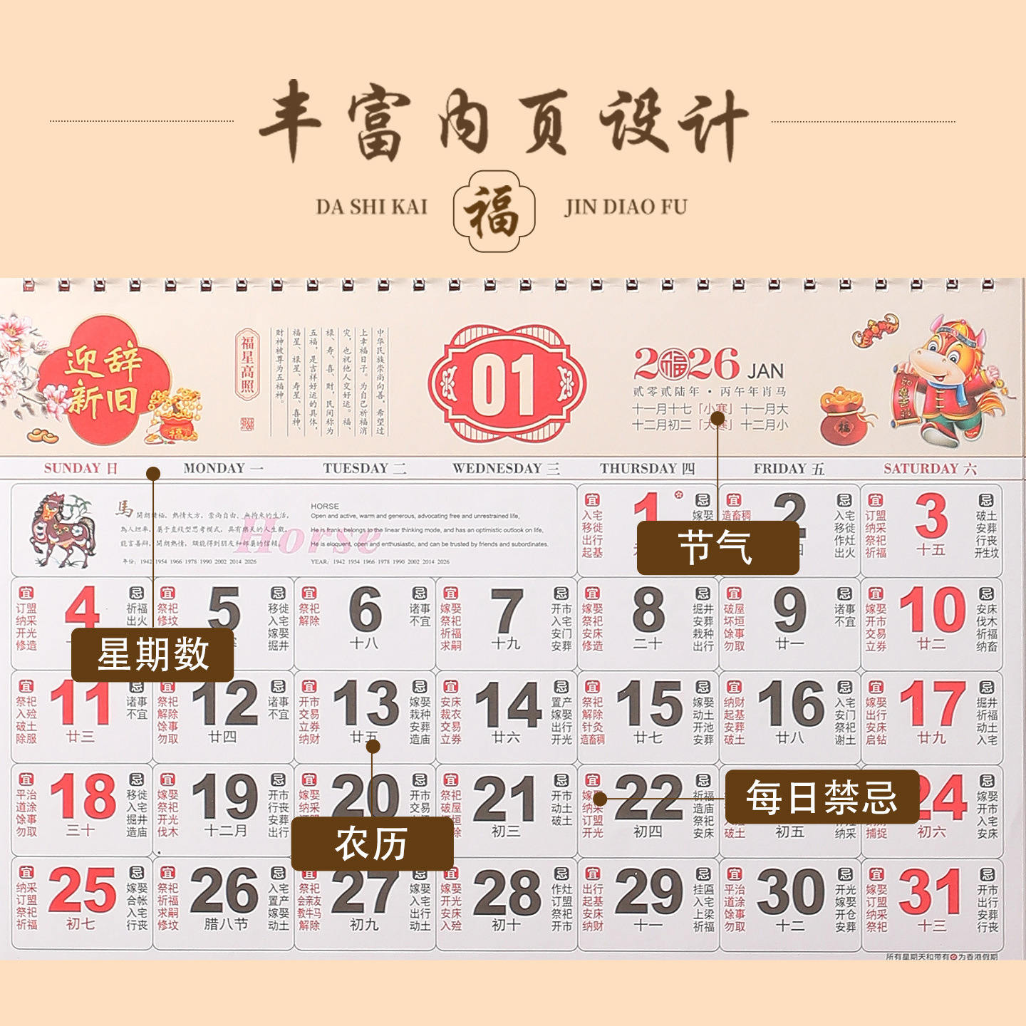 | 货号 | 挂历 | 规格 | 大六开-马到成功 |