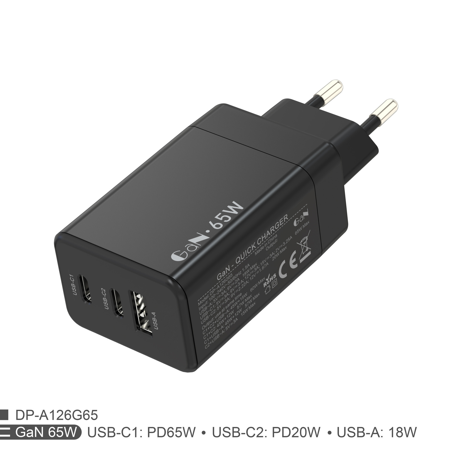 20V3A认证线路A+C+C 多口氮化镓手机电脑充电器 欧规65w PD快充