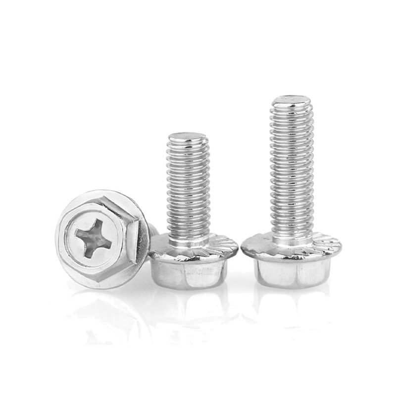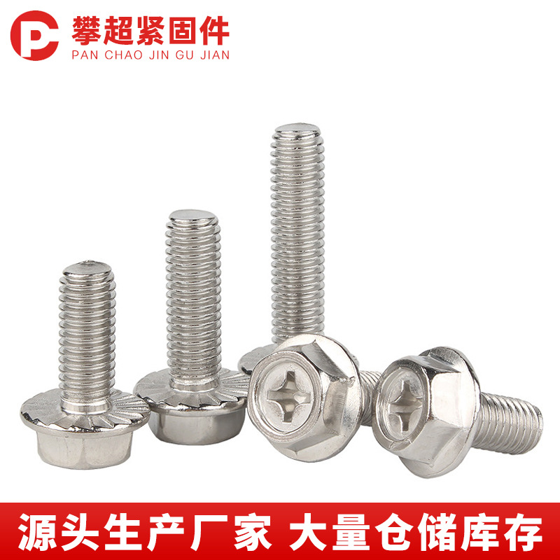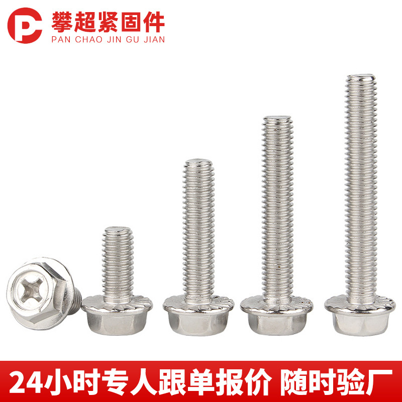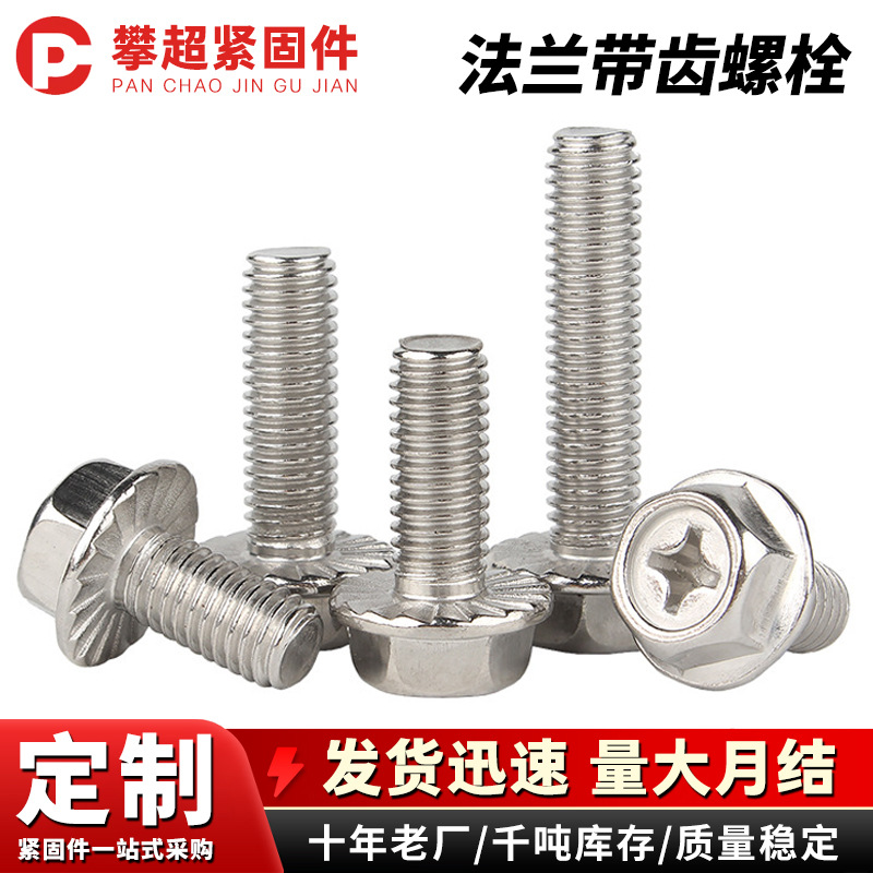 304不锈钢法兰防松螺丝平头带齿螺栓外六角法兰面防滑螺钉螺栓件