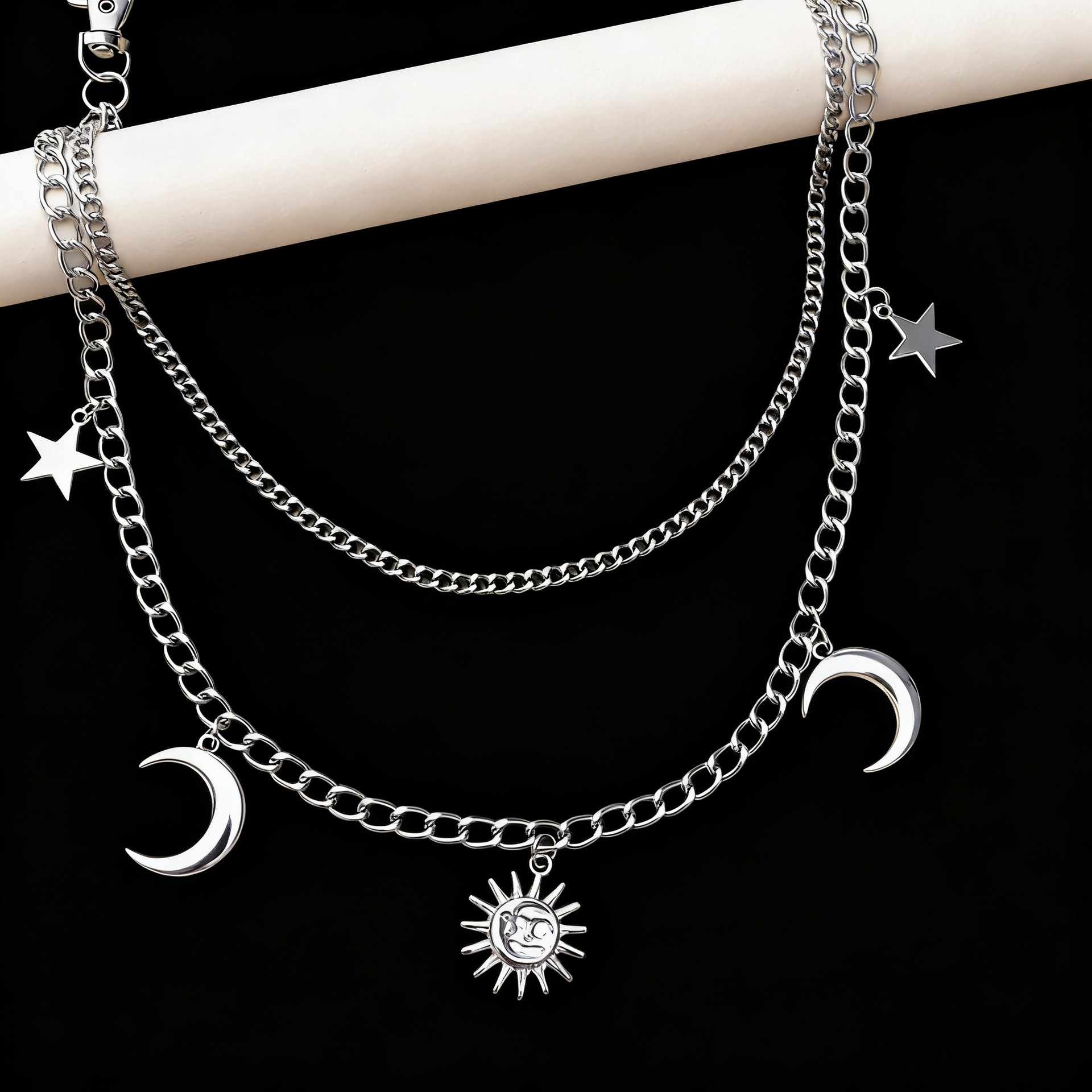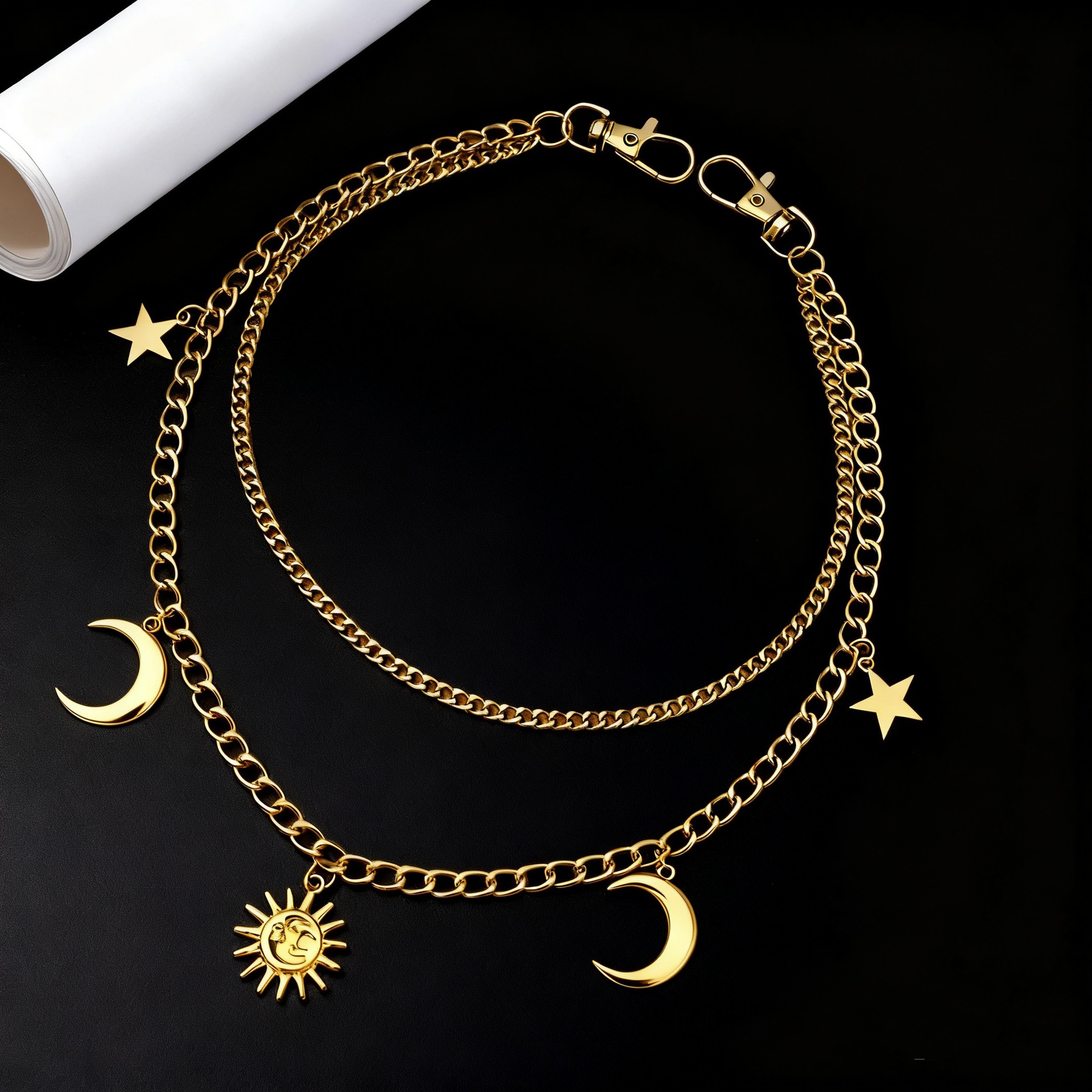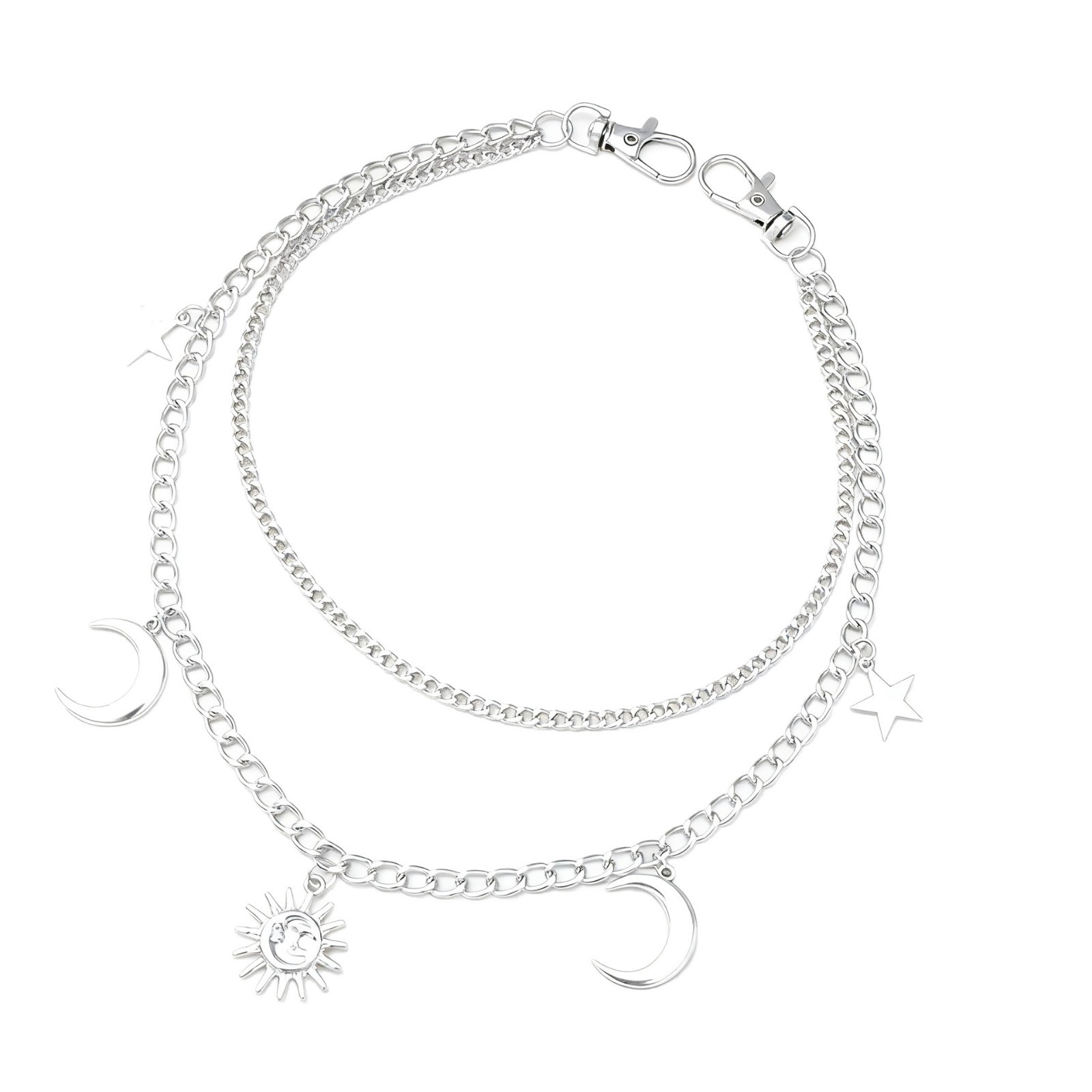 欧美跨境潮流个性星星月亮吊坠腰链简约嘻哈朋克风太阳花吊坠裤链