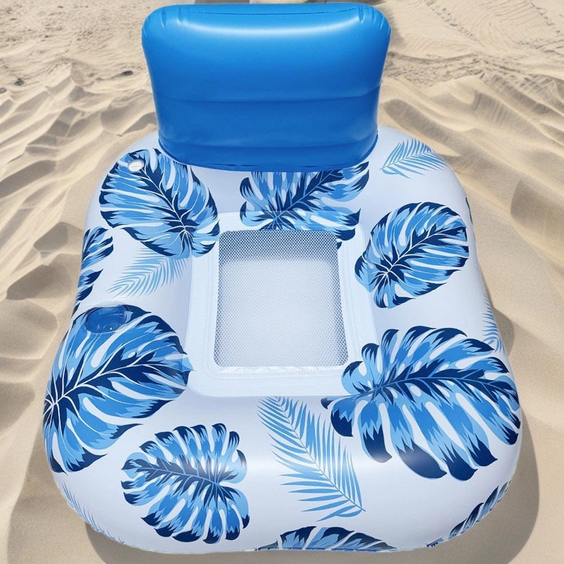 定制 加厚成人充气枫叶浮排 多功能网布躺椅水上带杯托 休闲浮床