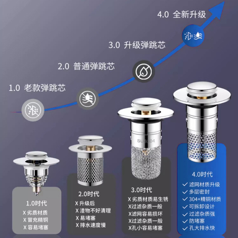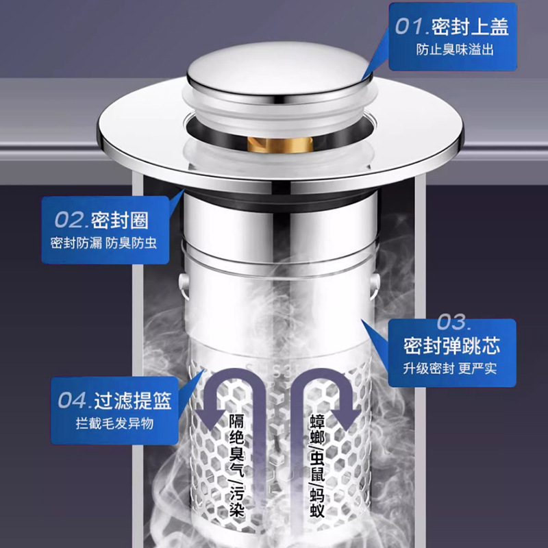 2025新款密封弹跳芯洗脸盆耐用塞子防堵按压式下水器洗脸盆地漏盖