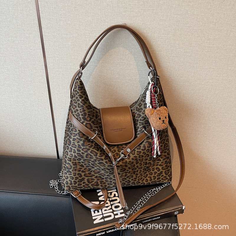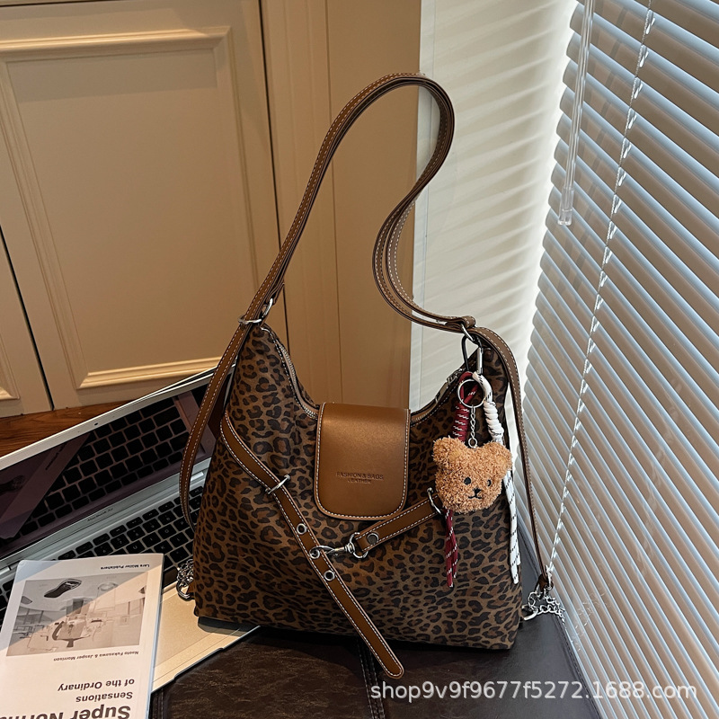 女士小众豹纹单肩包2025新款时尚慵懒腋下包女托特包单肩斜挎包