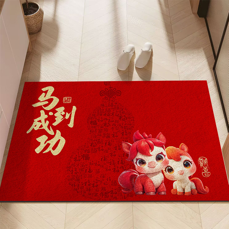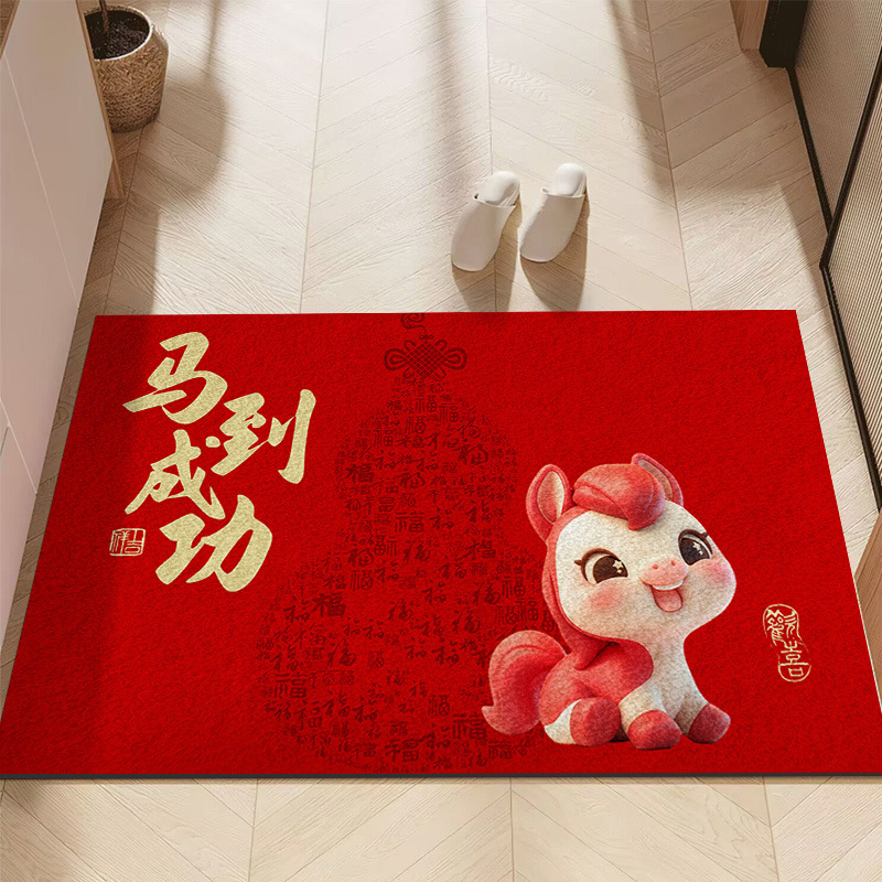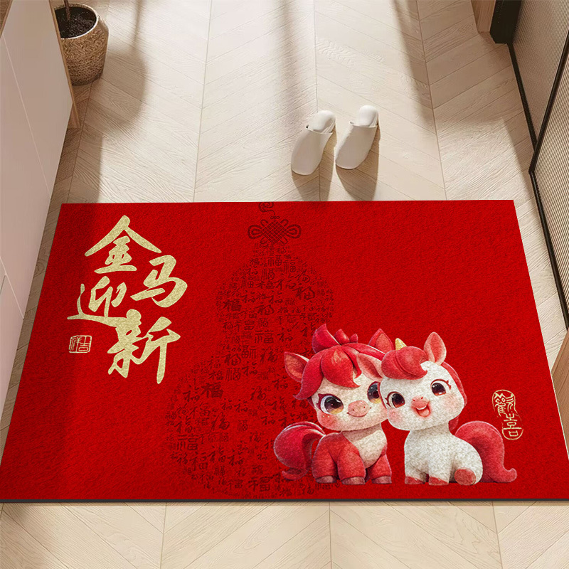 家用新年红门垫玄关吸水防滑入户脚垫马年大吉喜庆吉祥门垫