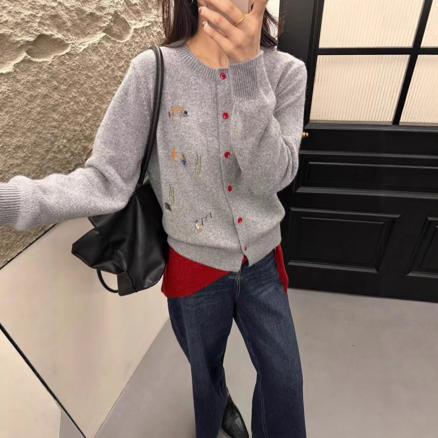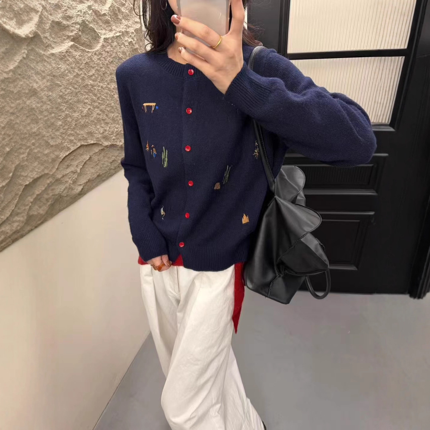 2025韩系高品质浣熊绣花海底世界重工百搭休闲加厚针织衫开衫外套