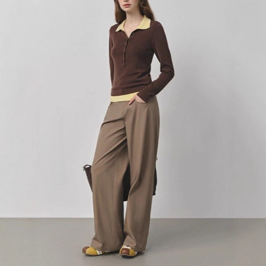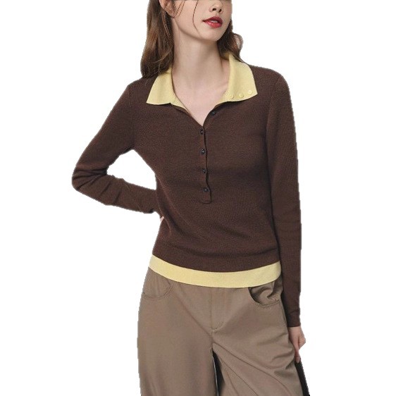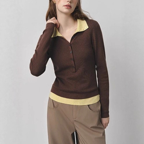 韩系复古撞色假两件针织衫女秋冬季新款修身显瘦气质减龄内搭上衣