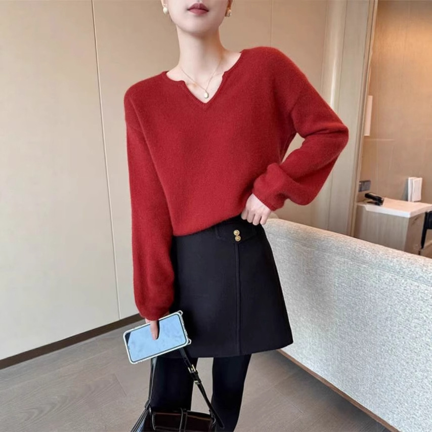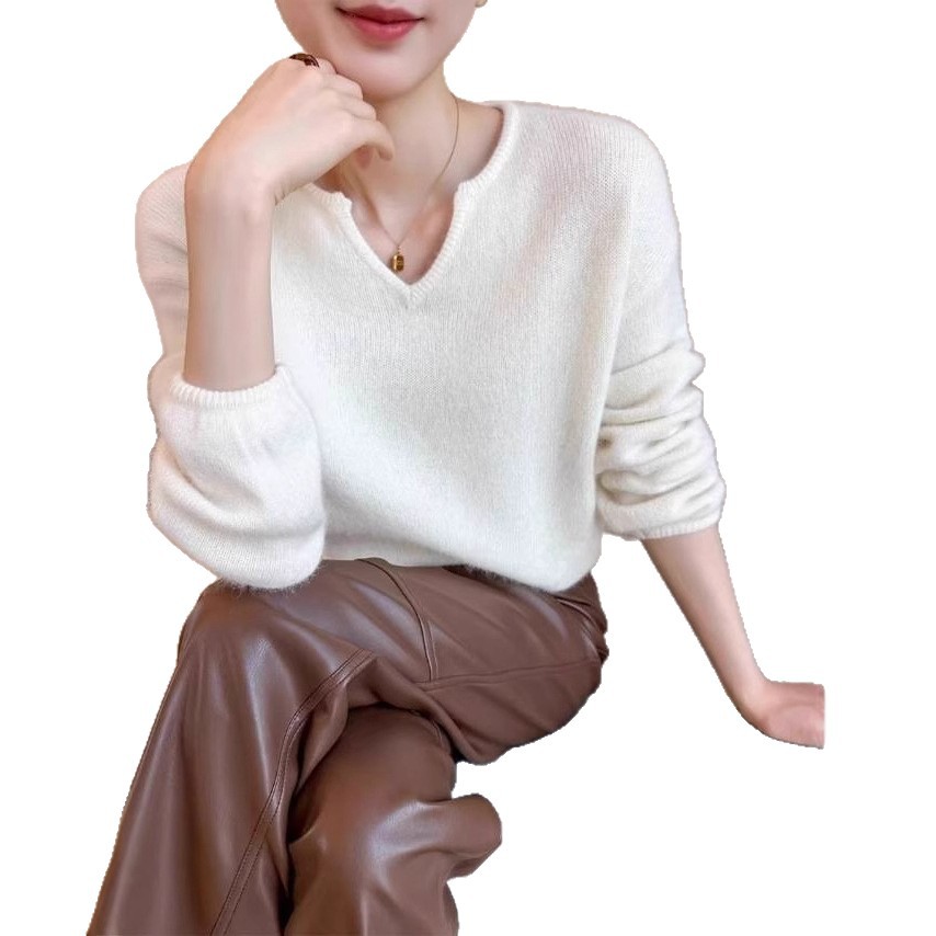 秋冬2025新纯羊毛V领长袖针织衫女士糯气质时尚气质百搭套头毛衣