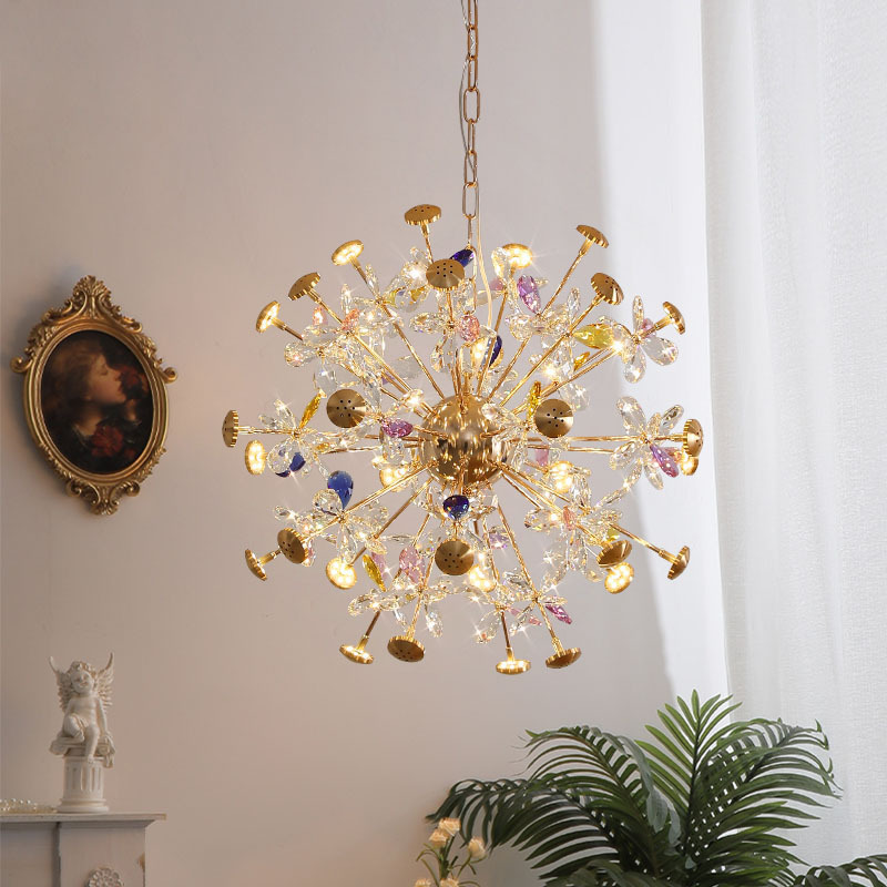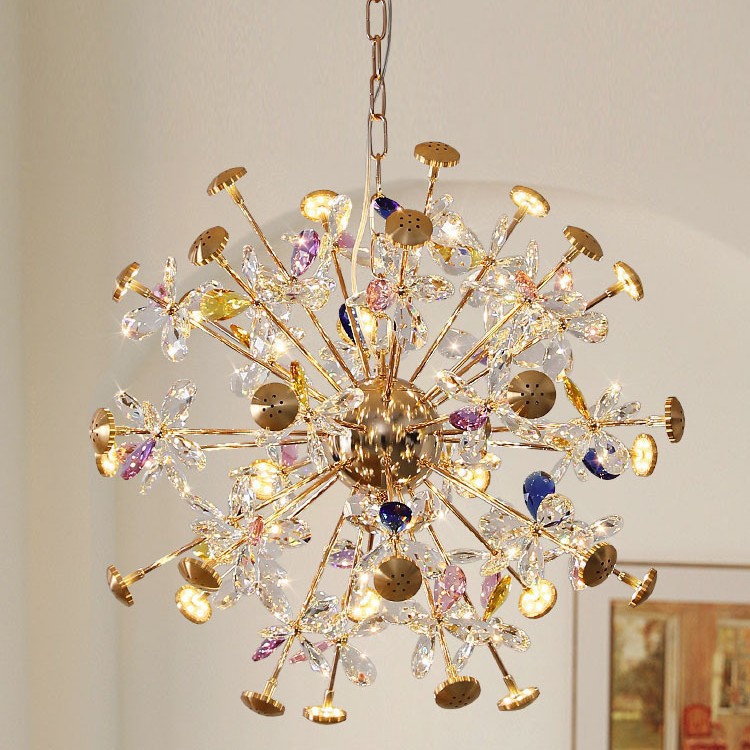 彩色轻奢水晶餐厅吊灯简约创意花瓣卧室灯蒲公英温馨客厅吊灯