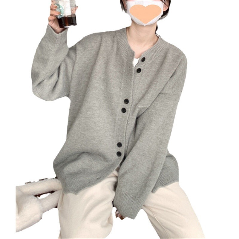 2025秋冬季新款学院风圆领针织开衫女宽松慵懒风休闲纯色毛衣外套
