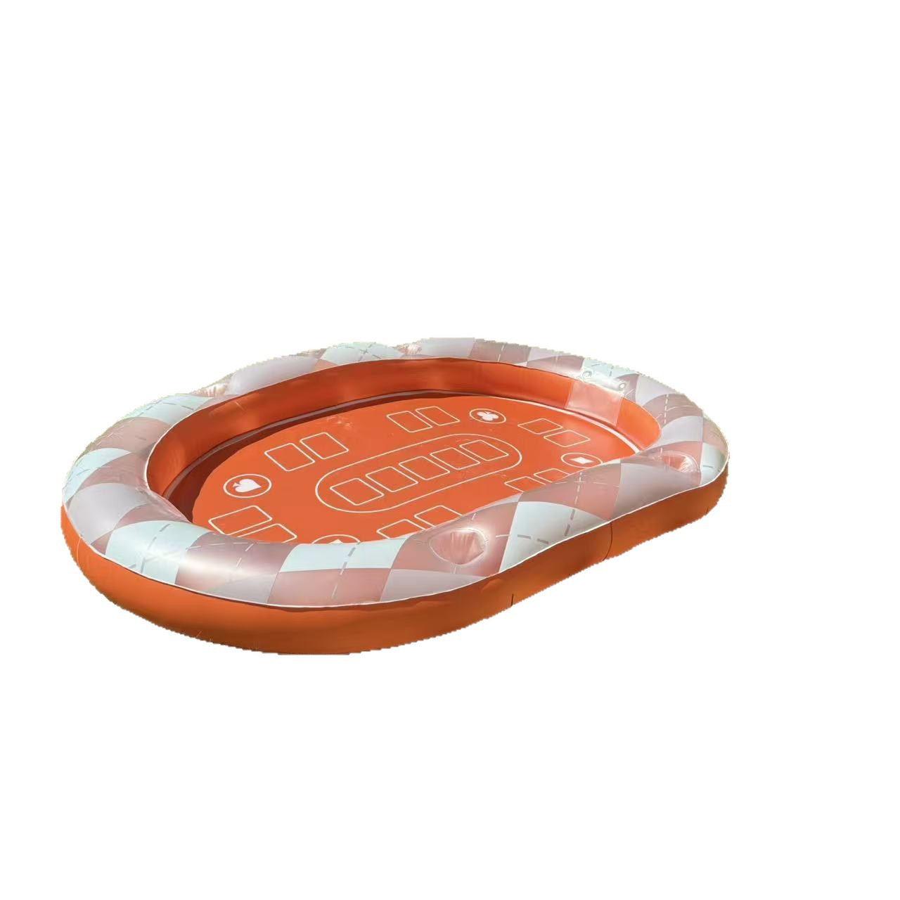 水上派对扑克充气躺椅泳池PVC游泳垫排水上桌上浮批发浮成人游戏