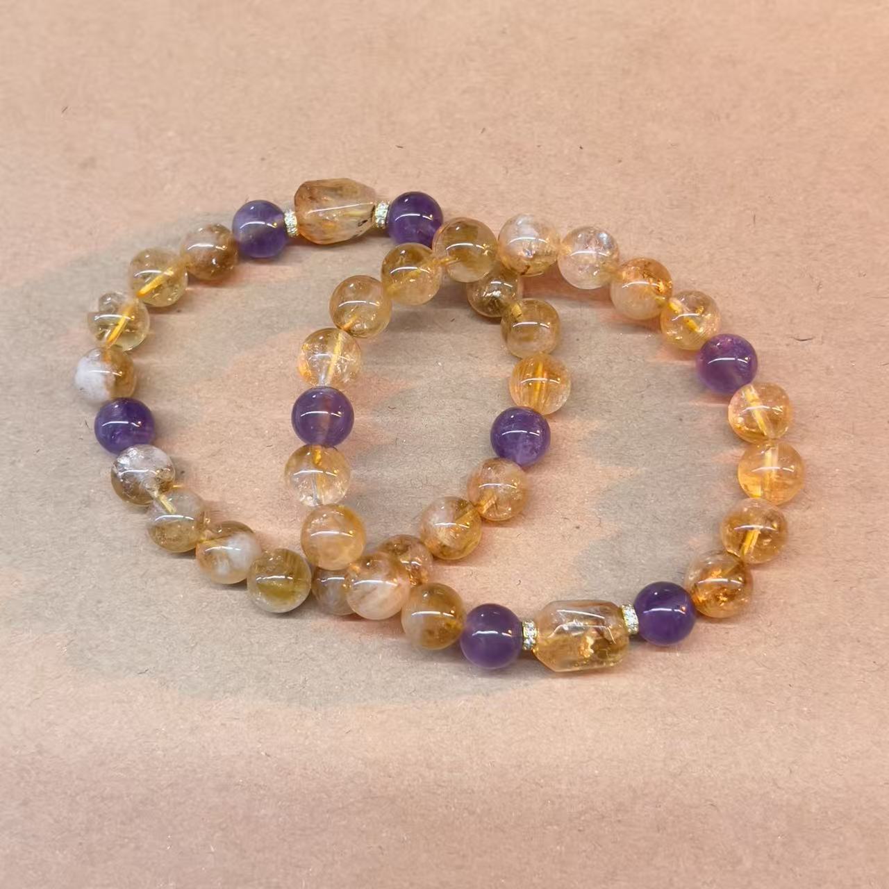 s925纯银天然黄塔晶紫水晶手链招财暴富旺财旺事业手串女串珠手饰