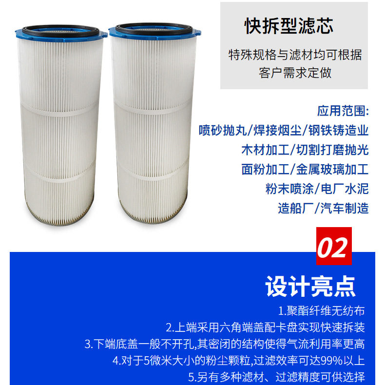 批发六耳快拆滤清器除尘滤芯工业用粉尘回收滤筒喷粉房喷塑滤芯