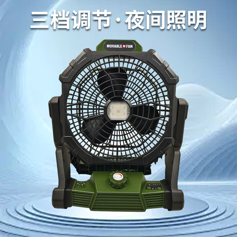 便携式露营照明小风扇 现货桌面大风力遥控照明灯野外电风扇批发