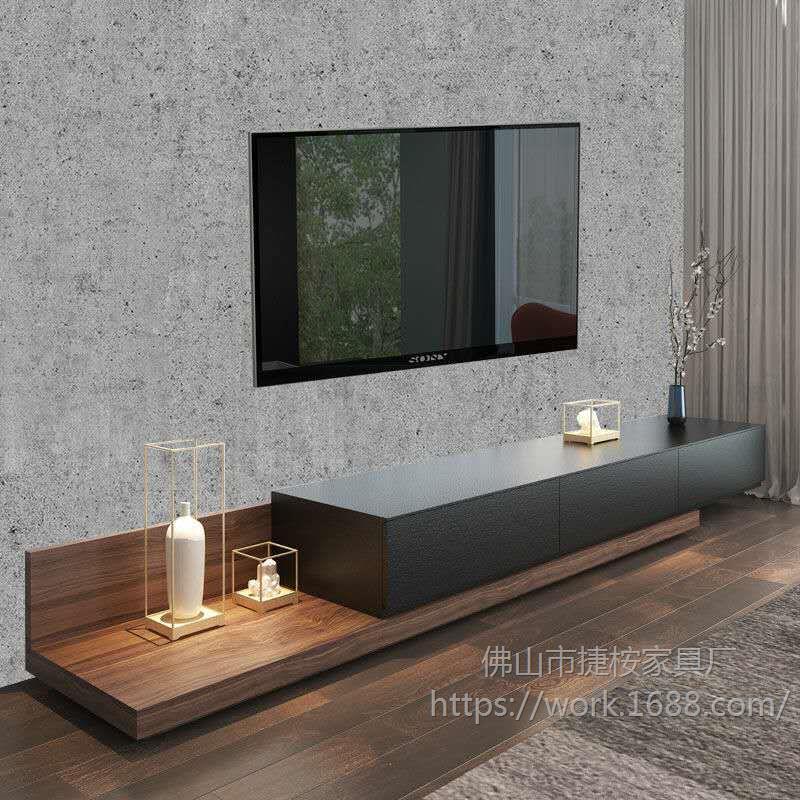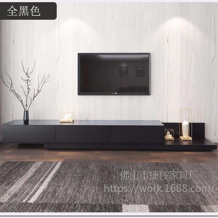 北欧电视柜茶几组合 黑胡桃色可伸缩电视机柜 现代简约小户型地柜