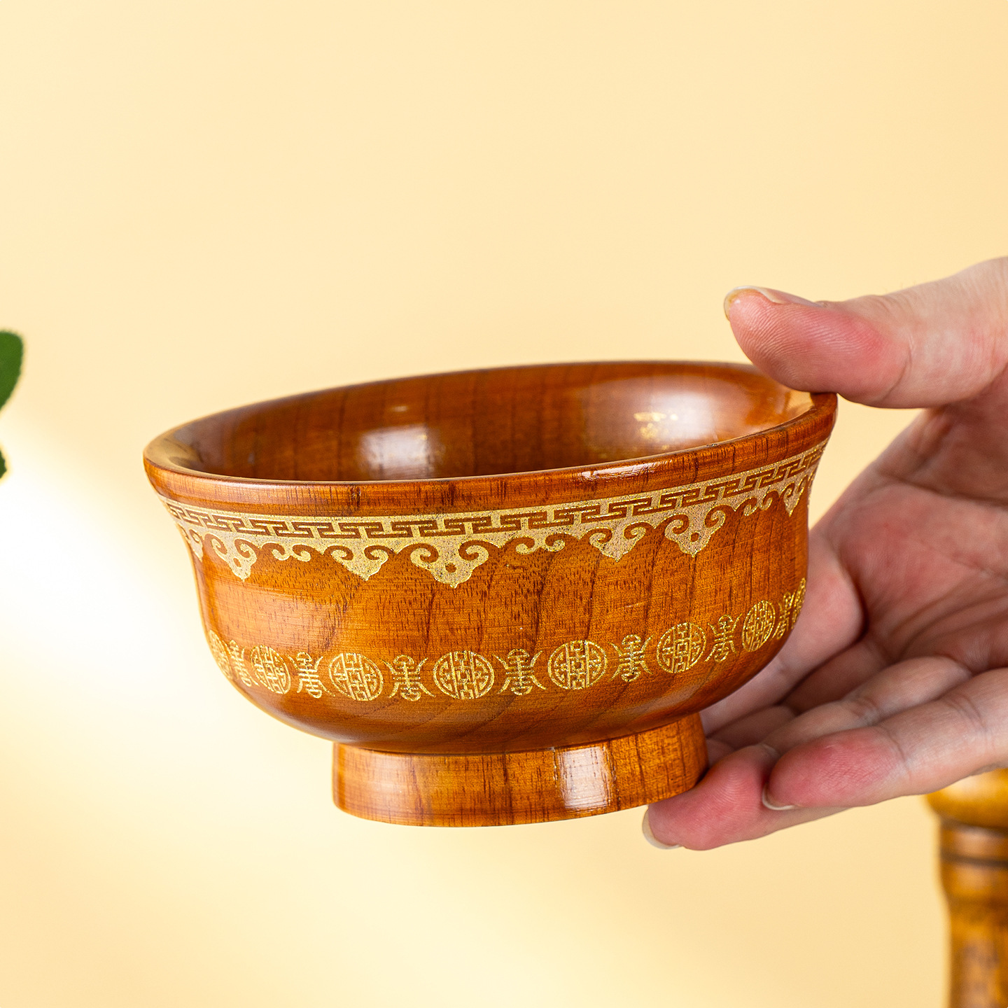 定制激光雕刻藏式花纹木碗实木干饭碗网红碗家用马奶酒碗奶茶碗