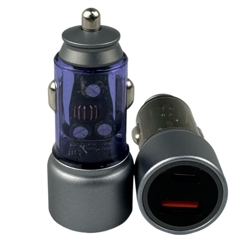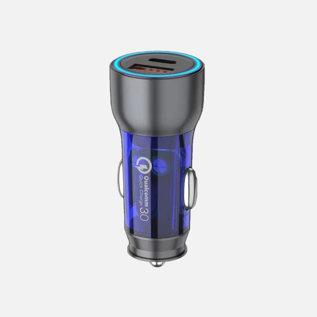 PD20W+QC18W点烟器快充双口汽车充电器透明铝合金车充超级快充