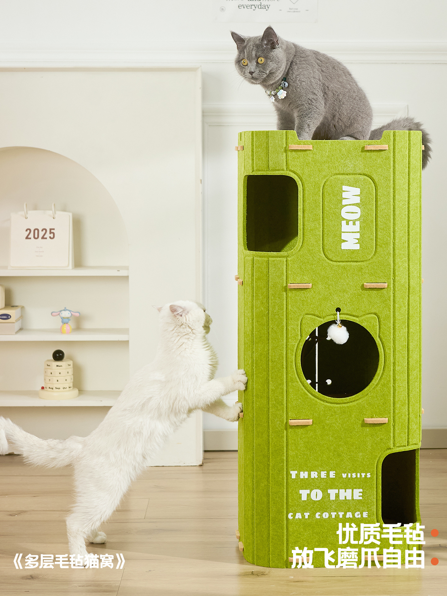规格 | 三层卡其色毛毡爬架【低价促销 仅限50单】不带毛绒垫 | | 规格 | 猫脸三层绿色猫窝+1个四季双面垫(稳固性加强) |