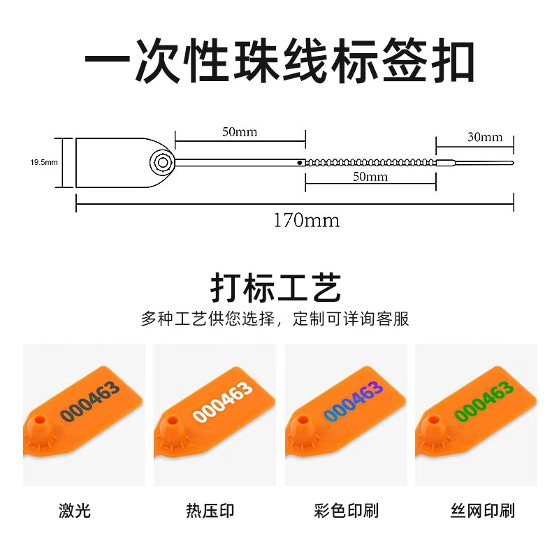 批发一次性塑料珠线标签扣防调包防拆封条鞋子标签扎带防盗料封签