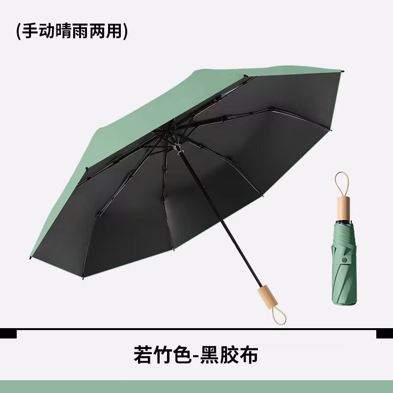 木手柄自动折叠雨伞黑胶遮阳防紫外线晴雨伞可印logo广告伞