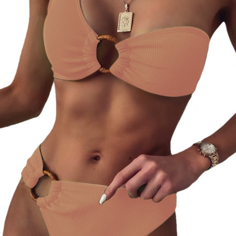 欧美性感单肩泳衣女亚马逊速卖通纯色分体泳衣性感镂空比基尼女