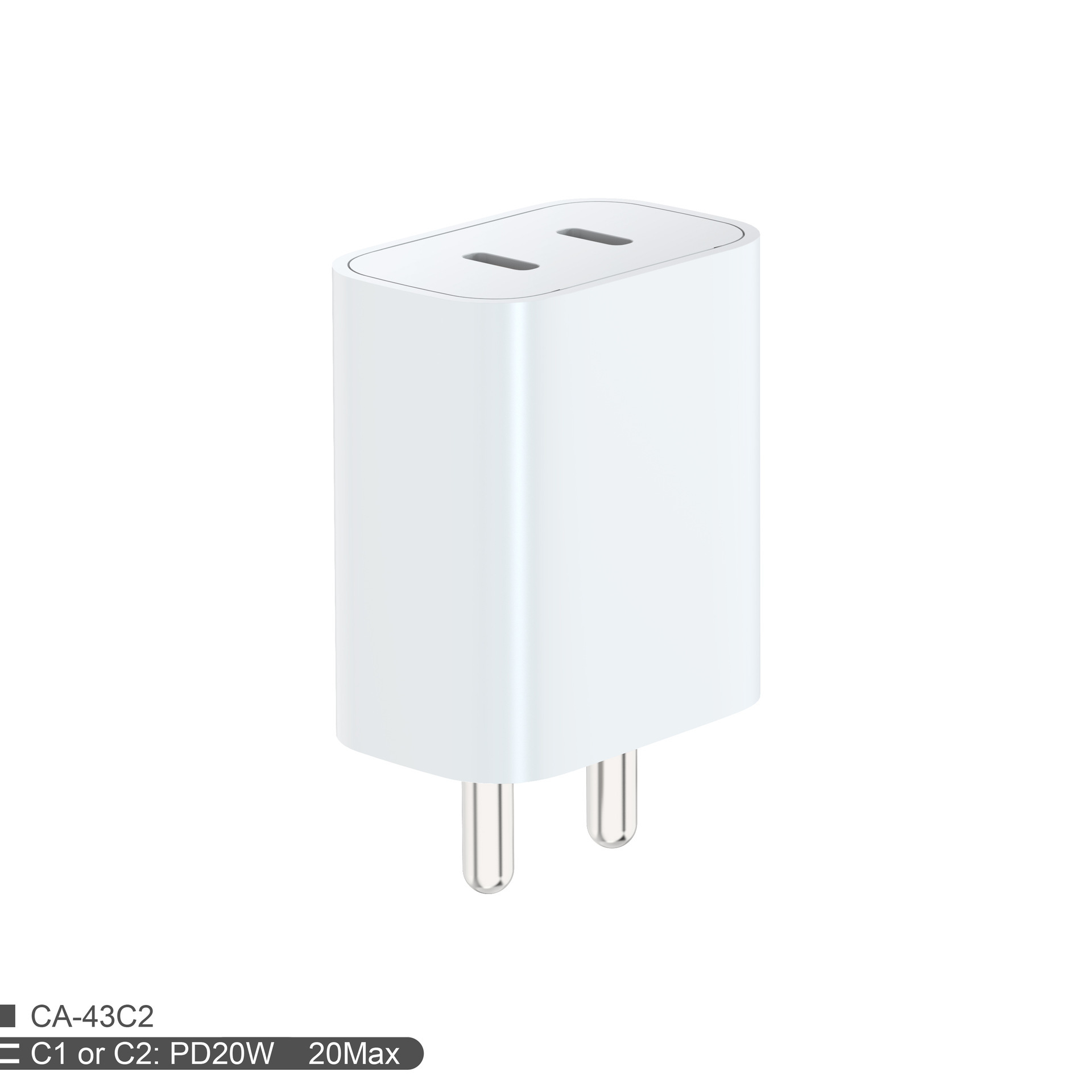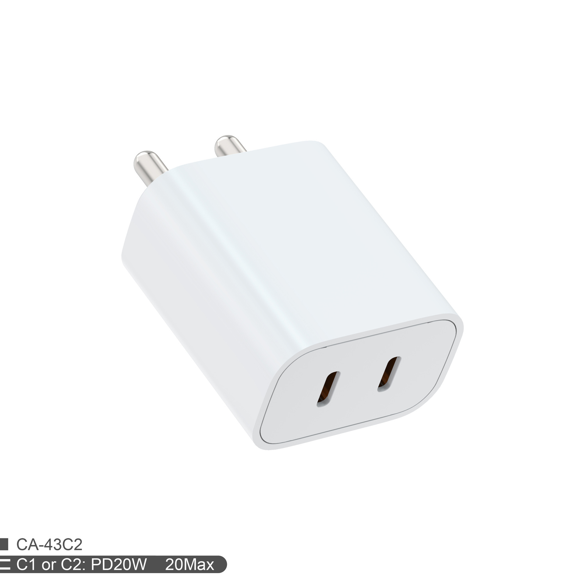 厂家直销智能手机充电器盲插双C快充充电头20WPD C+C印度规充电器