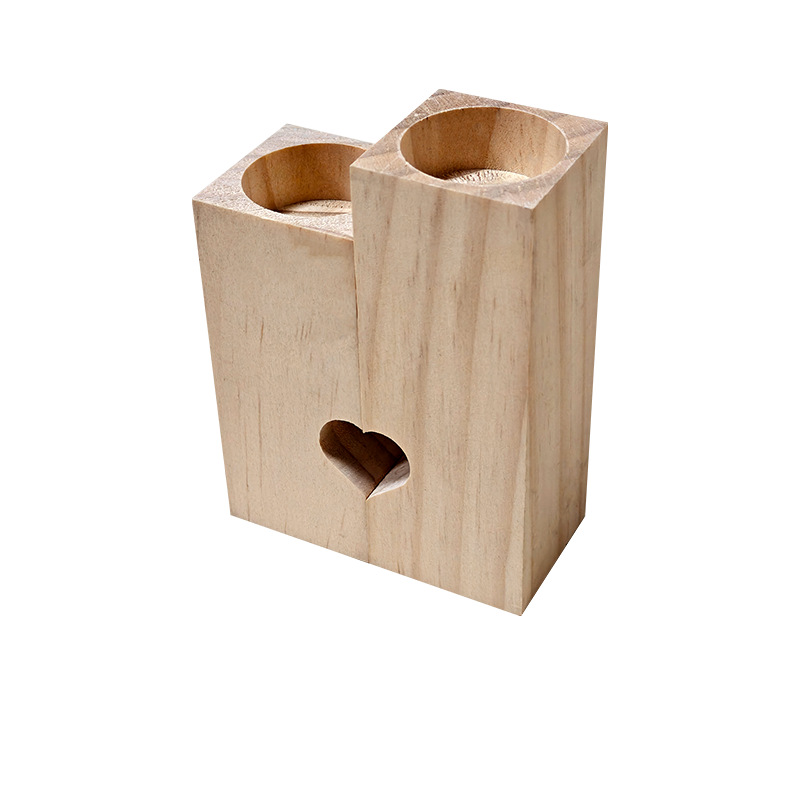 跨境爱心形蜡烛台情人节氛围蜡烛台摆件亚马逊实木松木烛台