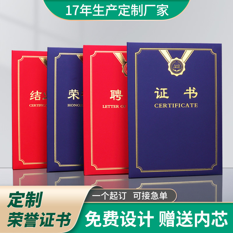 荣誉证书定制企业聘书外壳加内芯技能培训结业证书封皮高级感订做