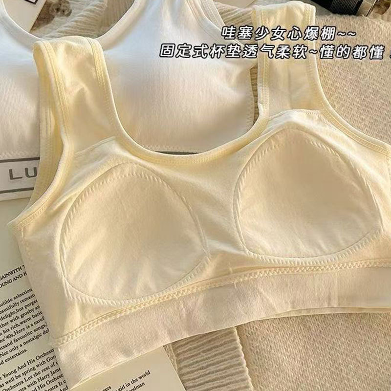 英文字母带无缝少女背心内衣抹胸固定杯胸垫宽肩带打底运动裹胸女