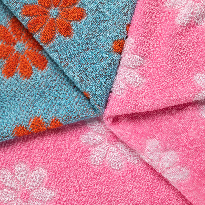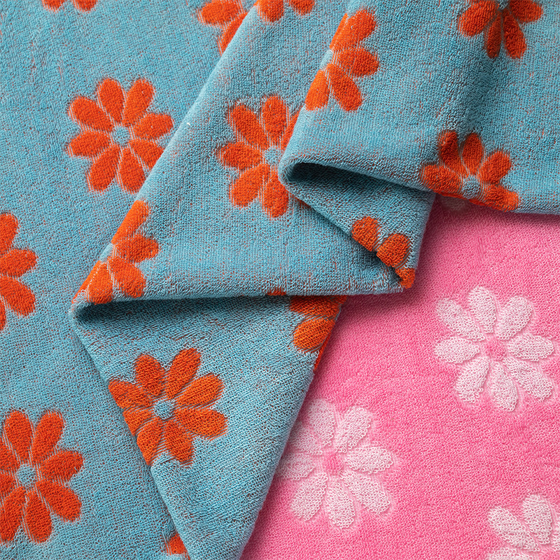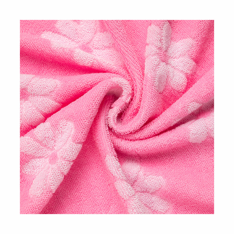 现货供应320克提花毛巾布面料纬边全涤单面四面弹性涤纶针织提花