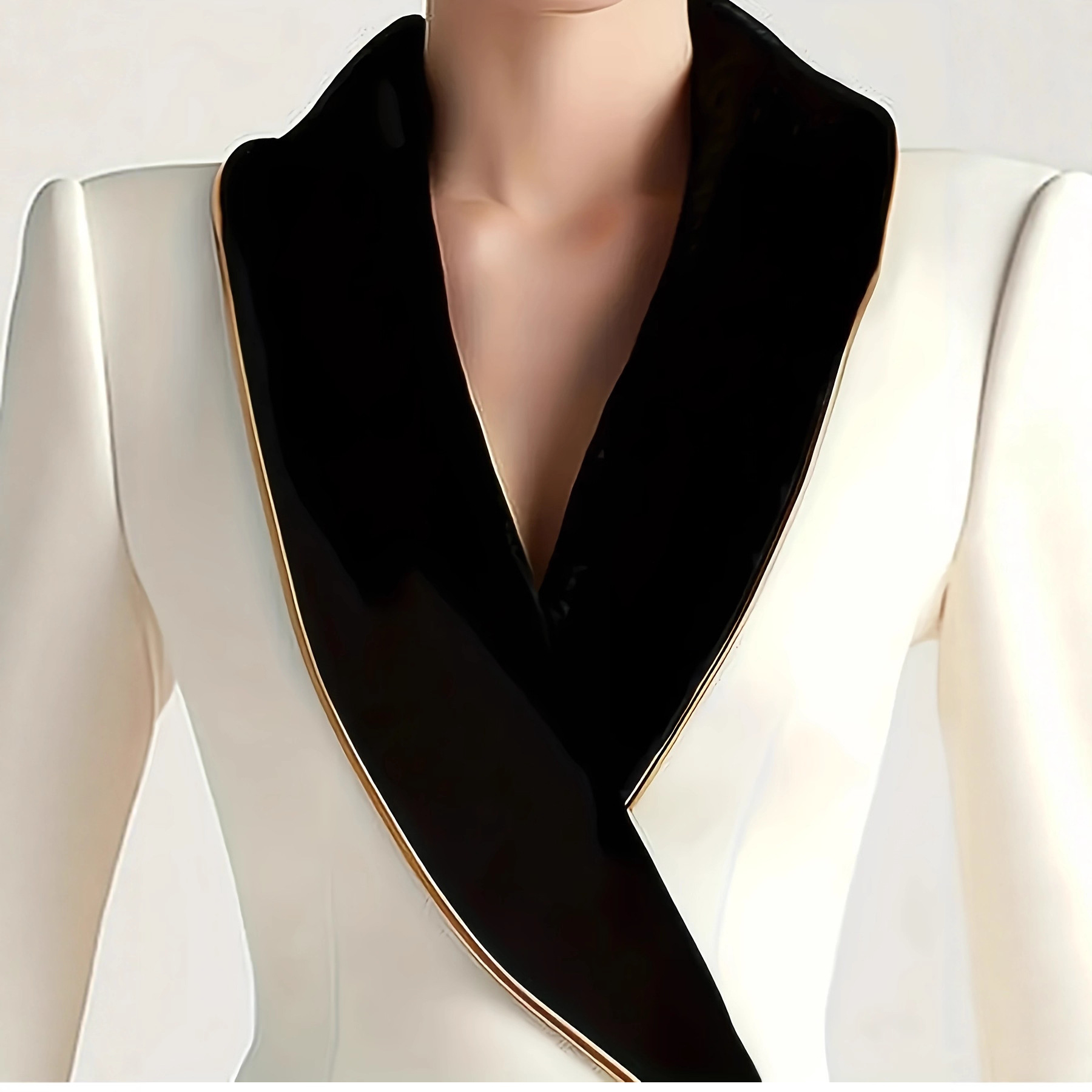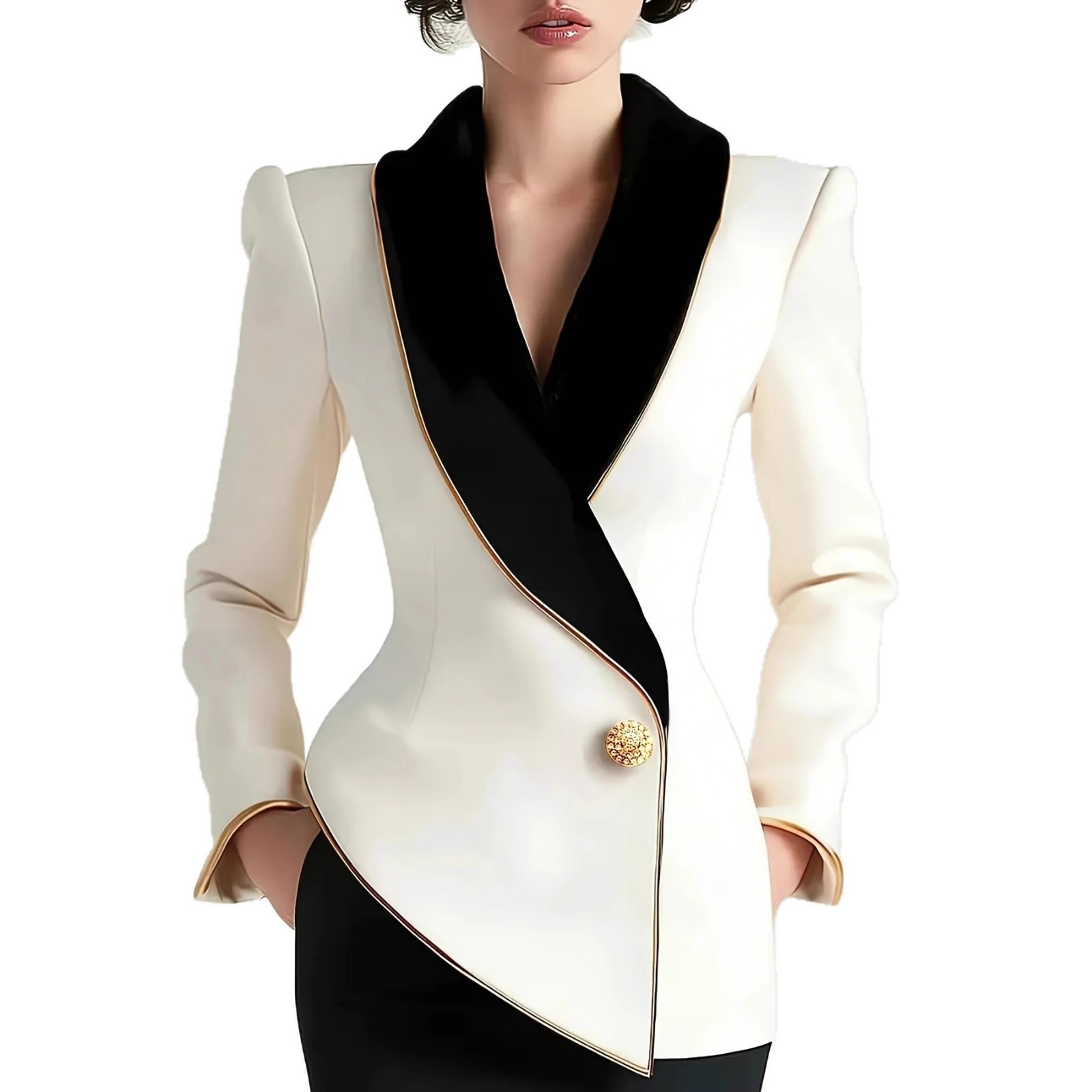 欧美中东跨境时尚优雅不规则女装金边条珍珠纽扣长袖修身西装外套