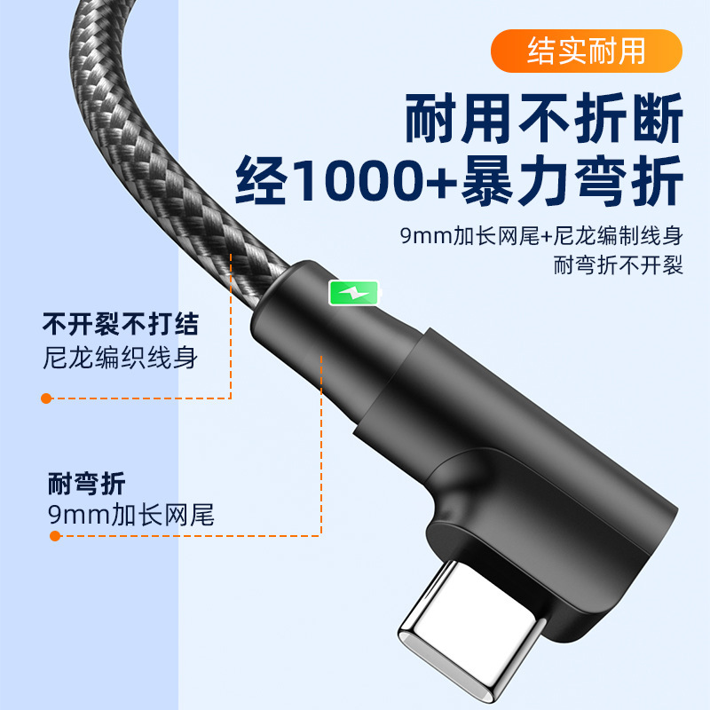 USB弯头typec数据线适用三星苹果15快充充电线加长充电线1m2m批发