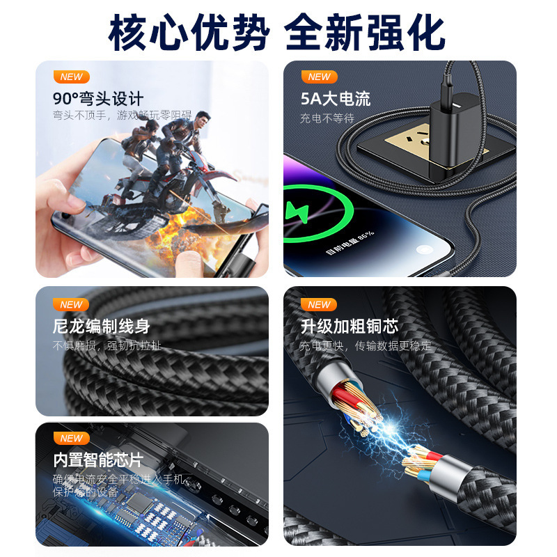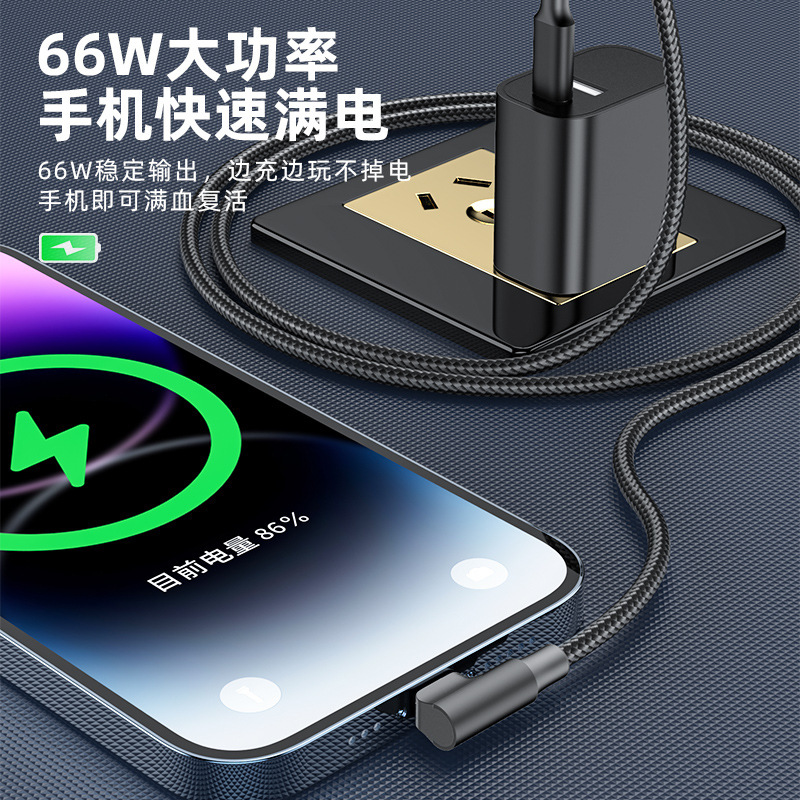C to C弯头60W手机快充数据线3米C-C 适用于苹果15三星华为小米