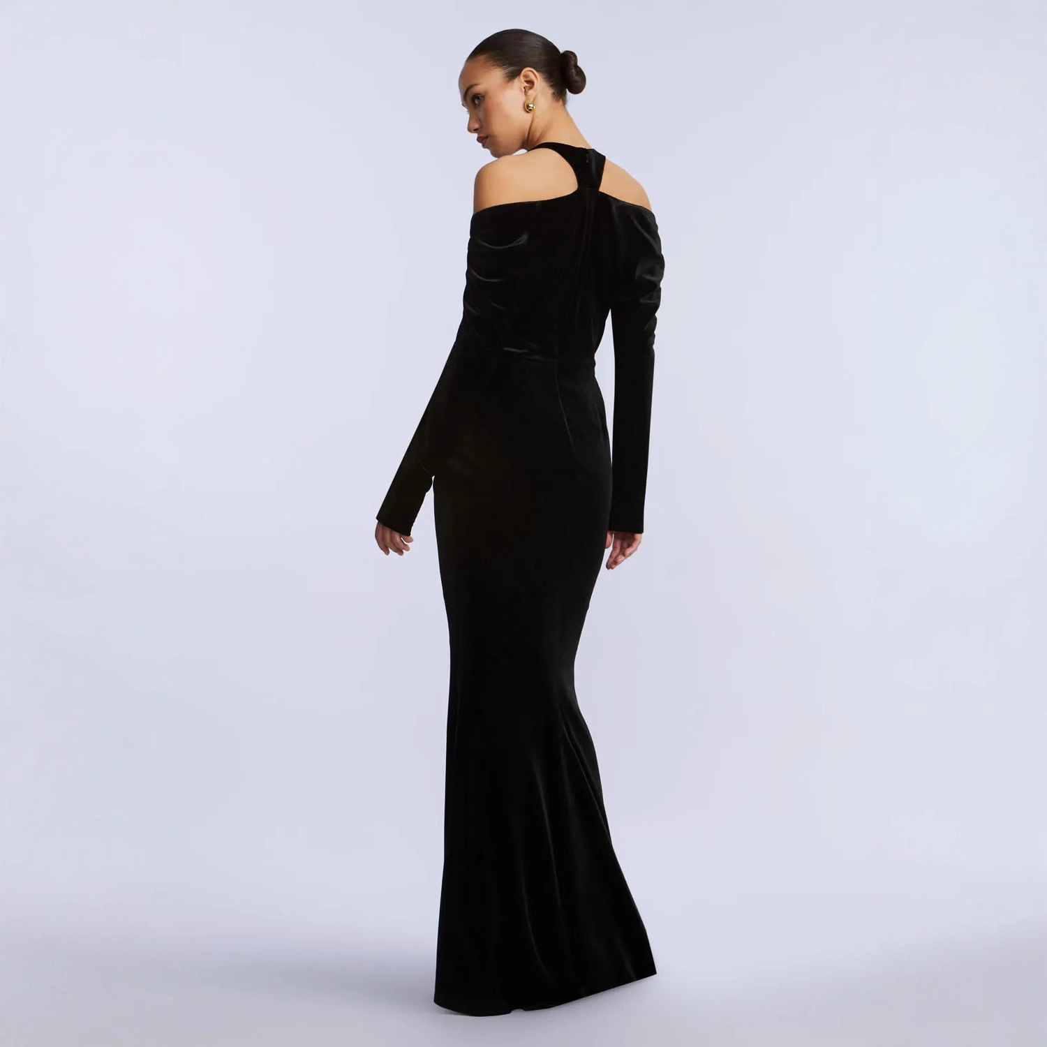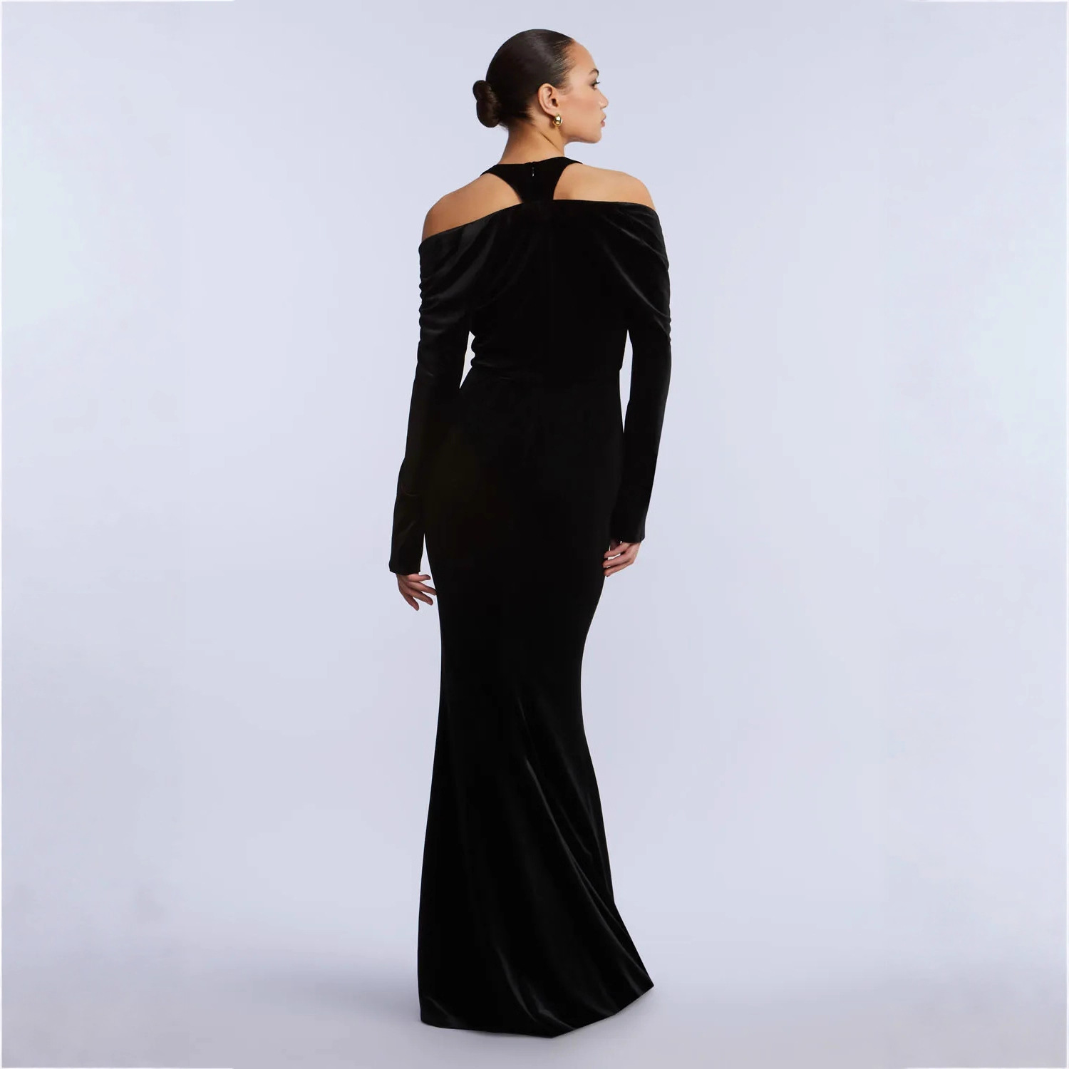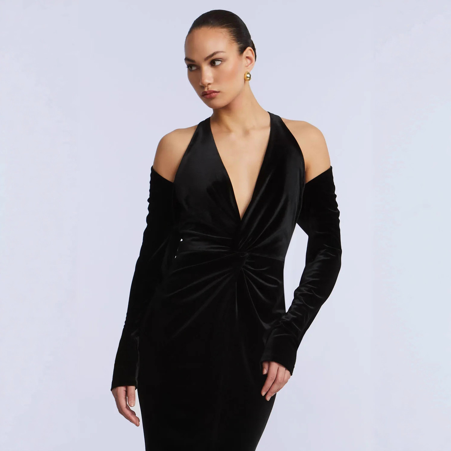 奢华欧美高级感跨境女装宴会挂脖晚礼服褶皱纯色丝绒鱼尾连衣裙女