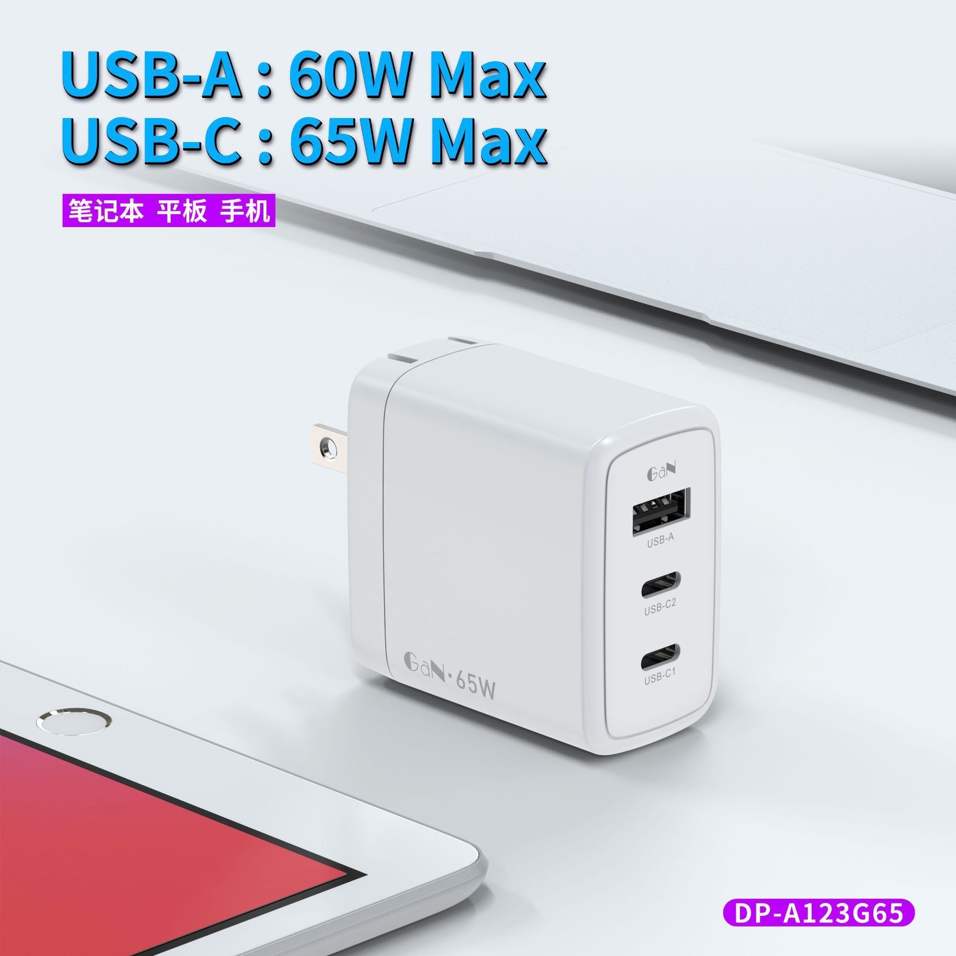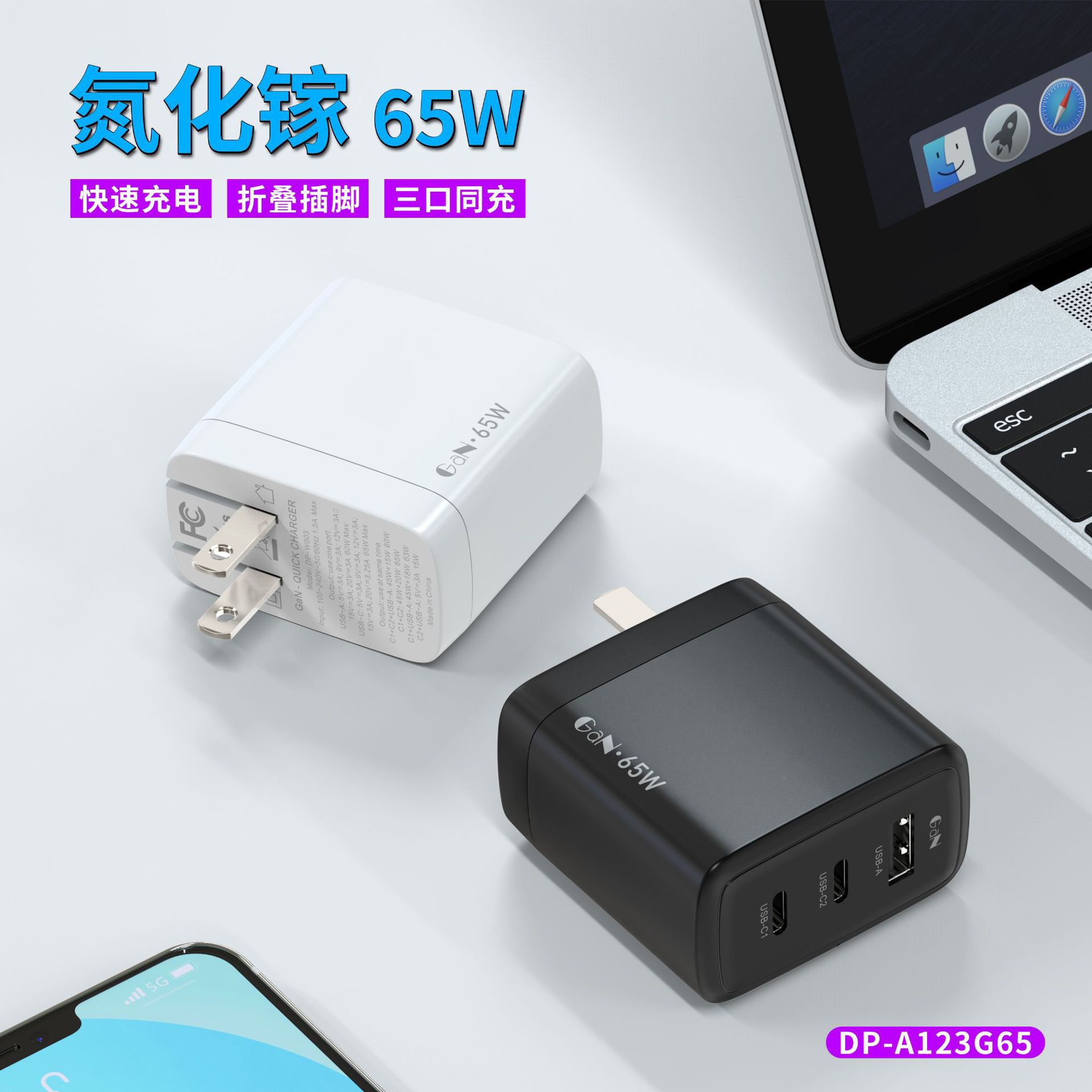 PD65W快充头GaN适用华为苹果平板三口快充电源适配器氮化镓充电器