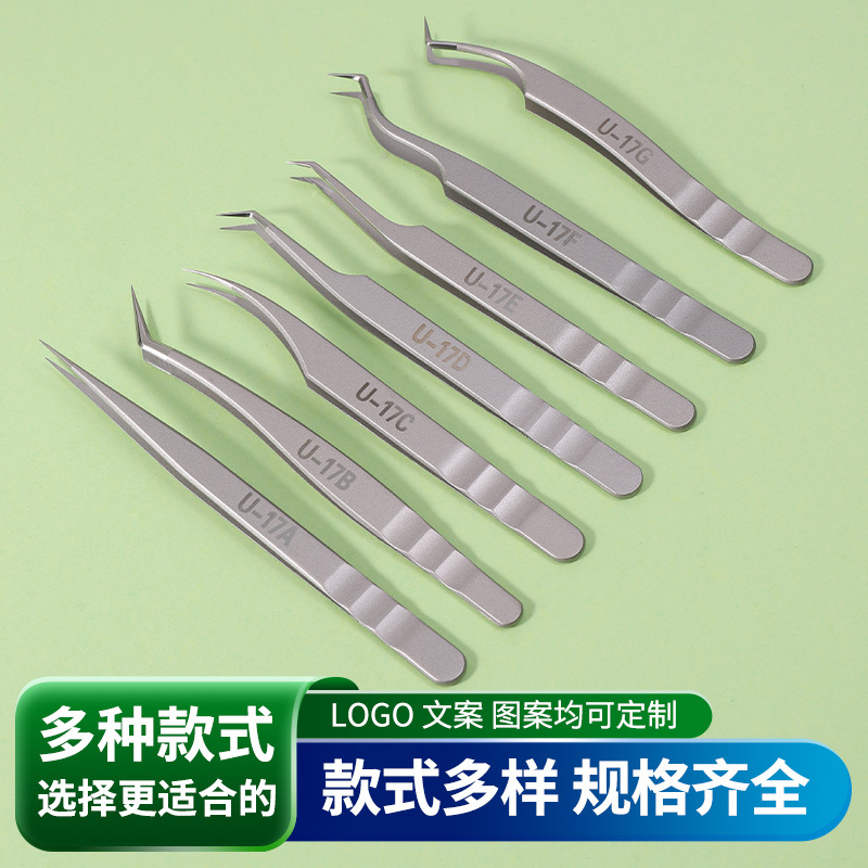 高精密不锈钢镊子尖头弯头美容睫毛镊中式凤凰夹公主镊子防静电夹