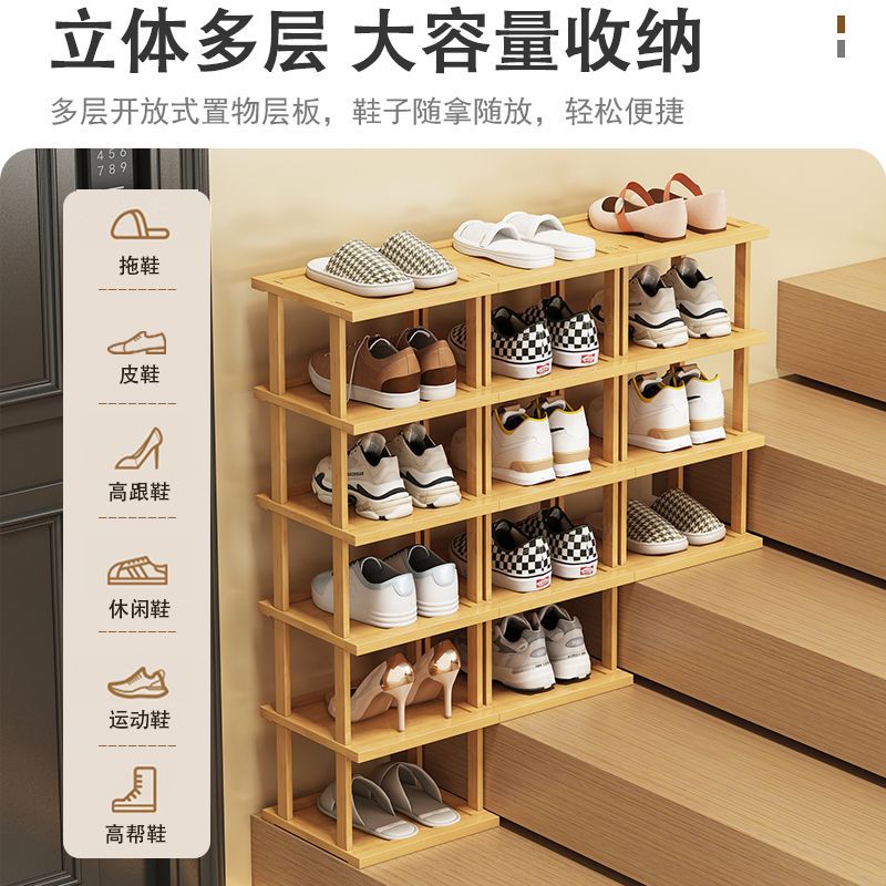 楼梯鞋架阶梯式窄高门口置物架自由组合鞋架子楠竹入户门鞋柜