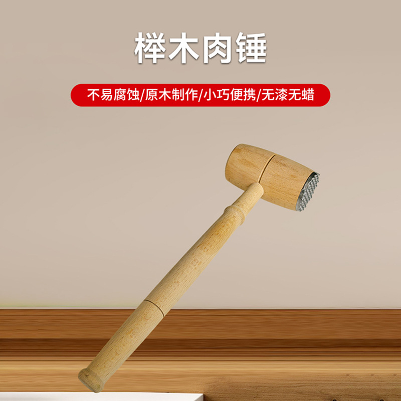 榉木松肉锤家用牛排锤嫩肉锤肉器实心无漆无蜡实木便携敲肉锤