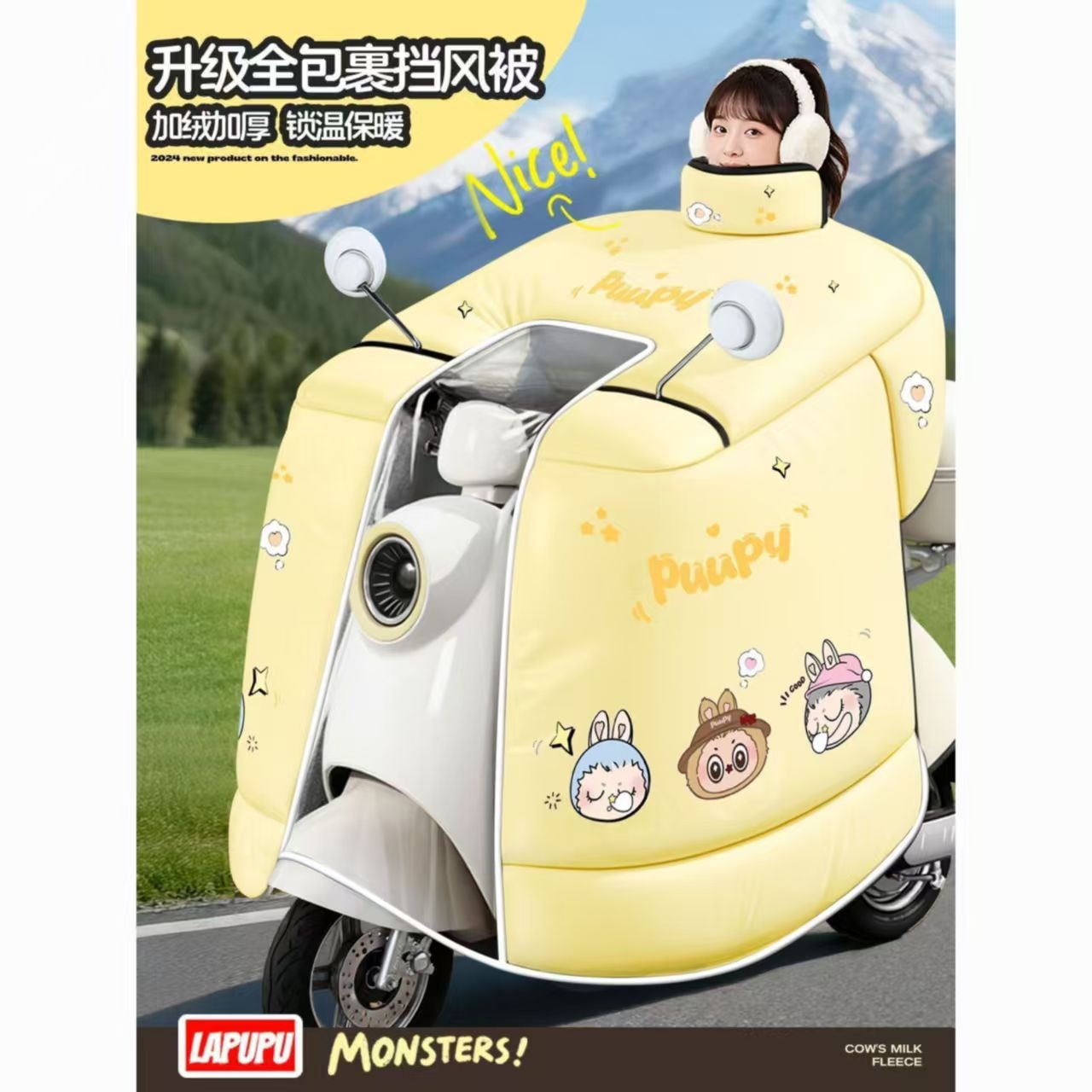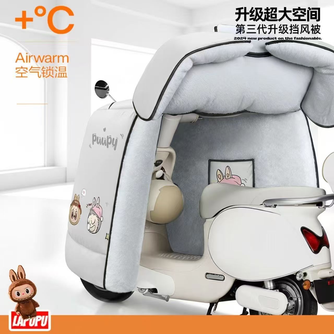 电动车挡风冬季加厚加绒防水电瓶车摩托车防雨加大加宽加厚北极绒