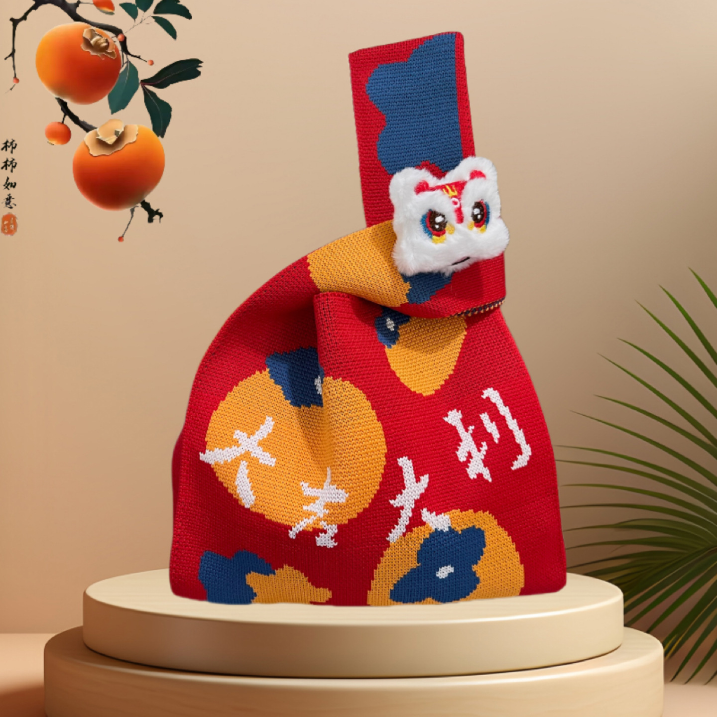 新款红色伴手礼礼品袋针织包龙年喜庆包包手拎手提生日礼物礼品袋