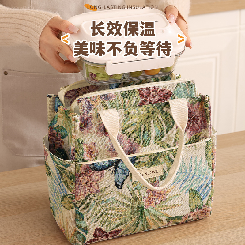 蓓恋国风饭盒袋新款大容量通勤上班族保温包便携手提午餐便当包