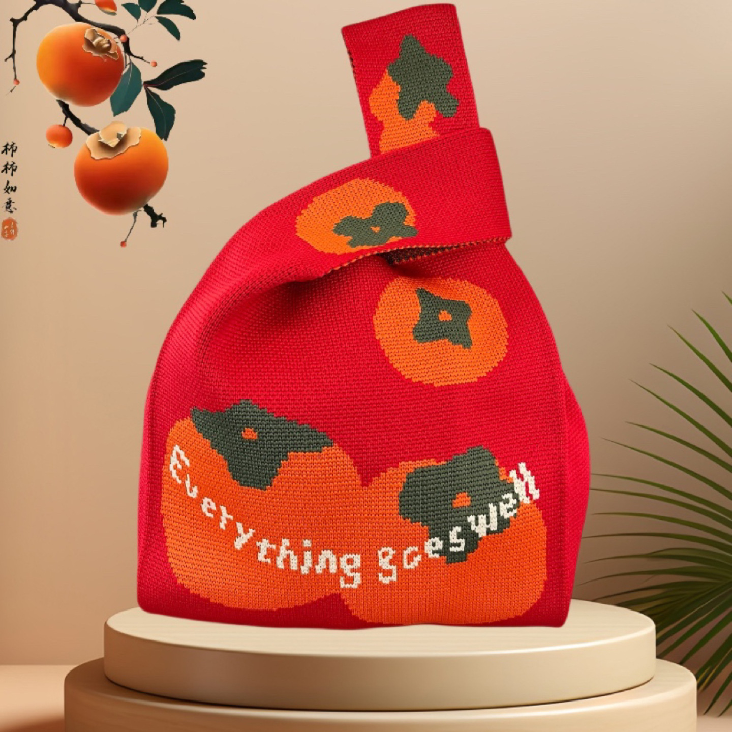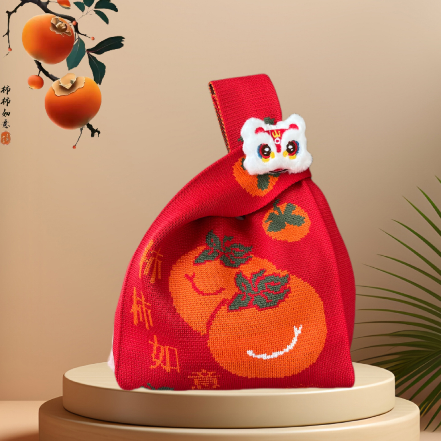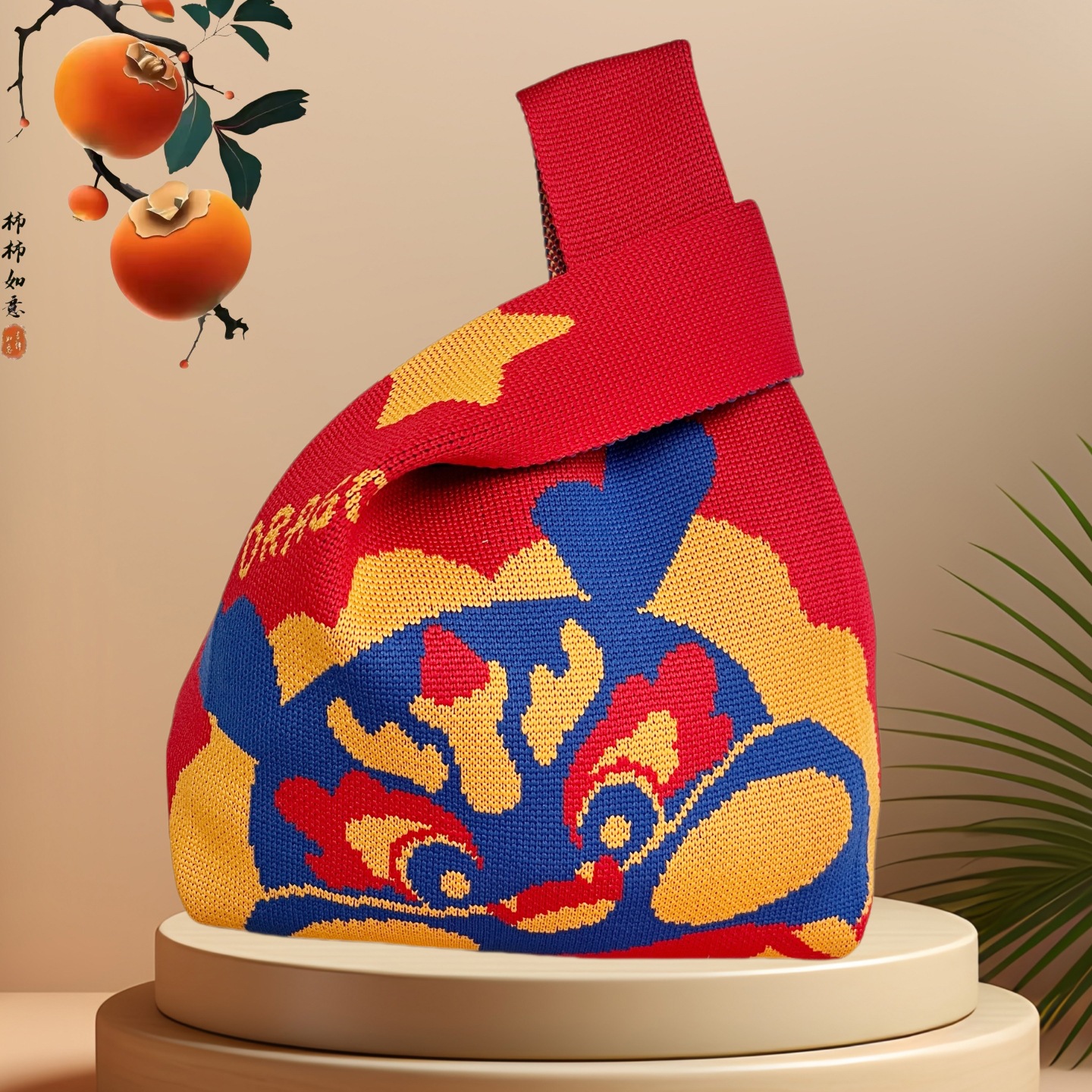 针织手提袋新款创意龙年背心包卡通针织手腕包年会结婚喜庆伴手礼