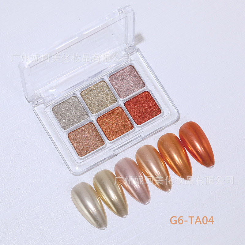 跨境美甲6色固态魔镜粉电镀色眼影盘镜面粉闪粉仙女粉极光粉批发