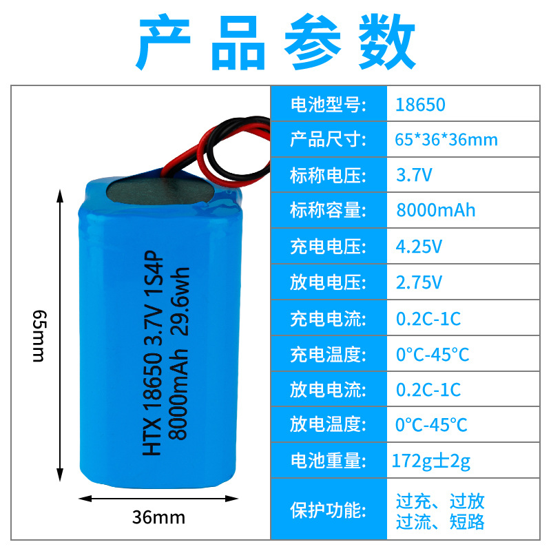 18650锂电池组3.7V大容量户外监控摄像头8000mAh1串4并UN38.3认证