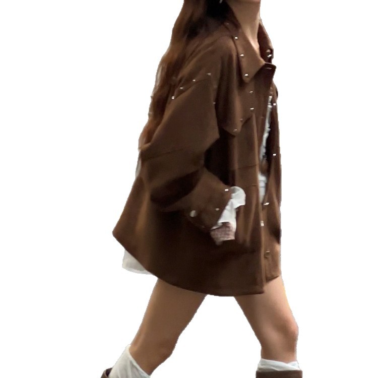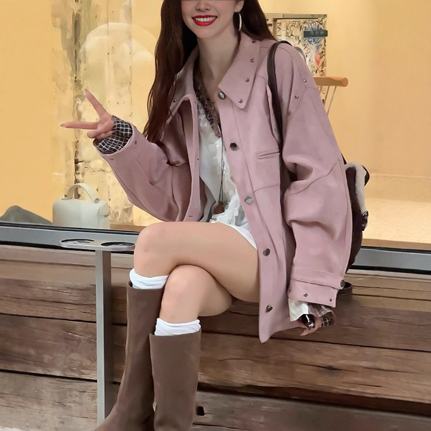 秋新铆钉麂皮绒短外套女2025秋季新款美式高街甜酷风开衫上衣氨纶