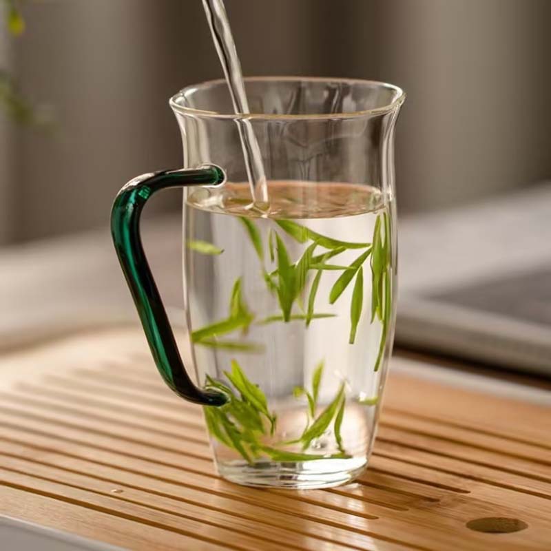 玻璃绿茶杯耐高温日式带把泡茶杯水杯家用杯子高颜值办公杯绿茶杯