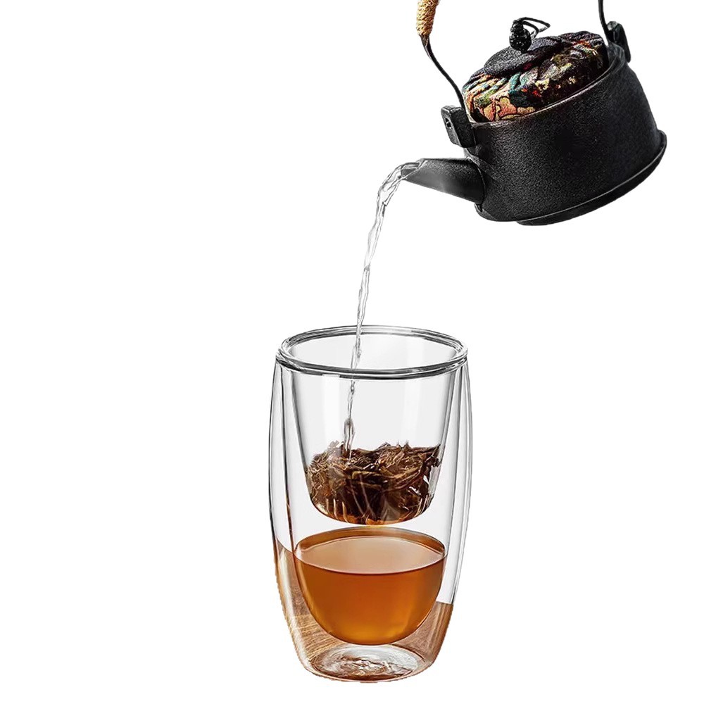 批发双层耐热玻璃蛋型杯透明咖啡杯家用隔热水杯带盖带过滤双层杯